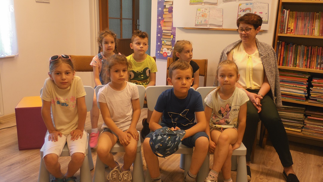 03.06.2022r.w Filii bibliotecznej w Kopkach odbyło się kolejne głośne czytanie w ramach akcji „Cała Polska czyta dzieciom”. Tym razem zaproszenie Biblioteki przyjęła klasa „0” z panią Marzeną Trybowską. Dzieci wysłuchały pięknie ilustrowanej, pełnej humoru i zagadek książeczki pt. „Opowieści o Muminkach” oraz pobawiły się grami z bibliotecznego Kącika Zabaw.