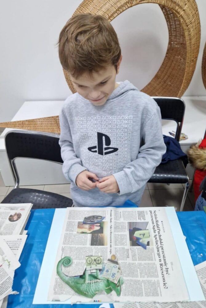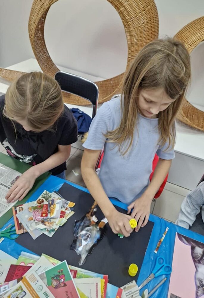 27 listopada 2025 r. w Centrum Wikliniarstwa odbyły się zajęcia plastyczne, podczas których dzieci, pracując pod okiem pani instruktor, tworzyły własne dzieła wykorzystując technikę kolażu. Uczestnicy z zaangażowaniem łączyli różnorodne materiały – kolorowe wycinki, ilustracje, elementy dekoracyjne – rozwijając przy tym wyobraźnię, kreatywność oraz zdolności manualne.