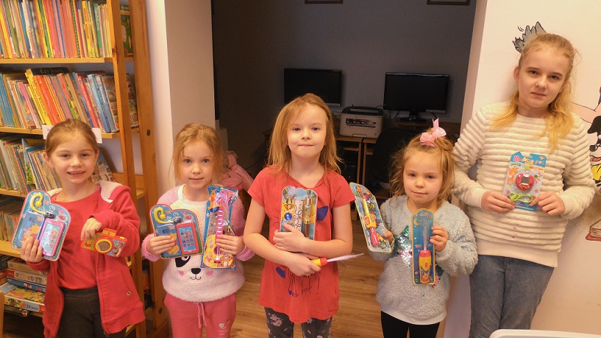 3.02.2021r. dzieci uczestniczyły w zajęciach w Filii bibliotecznej w Kopkach. Podczas tych zajęć poznały termin : czasopismo oraz strukturę budowy czasopisma. Nauczyły się korzystać ze słownika języka polskiego. Chętnie brały udział w rozwiązywaniu krzyżówki oraz układaniu wyrazu z rozsypanki literowej. Nauczyły się techniki stemplowania poprzez samodzielne wykonywanie stempelków i odbijaniu ich na kartce. Na zakończenie zajęć dzieci otrzymały drobne upominki.