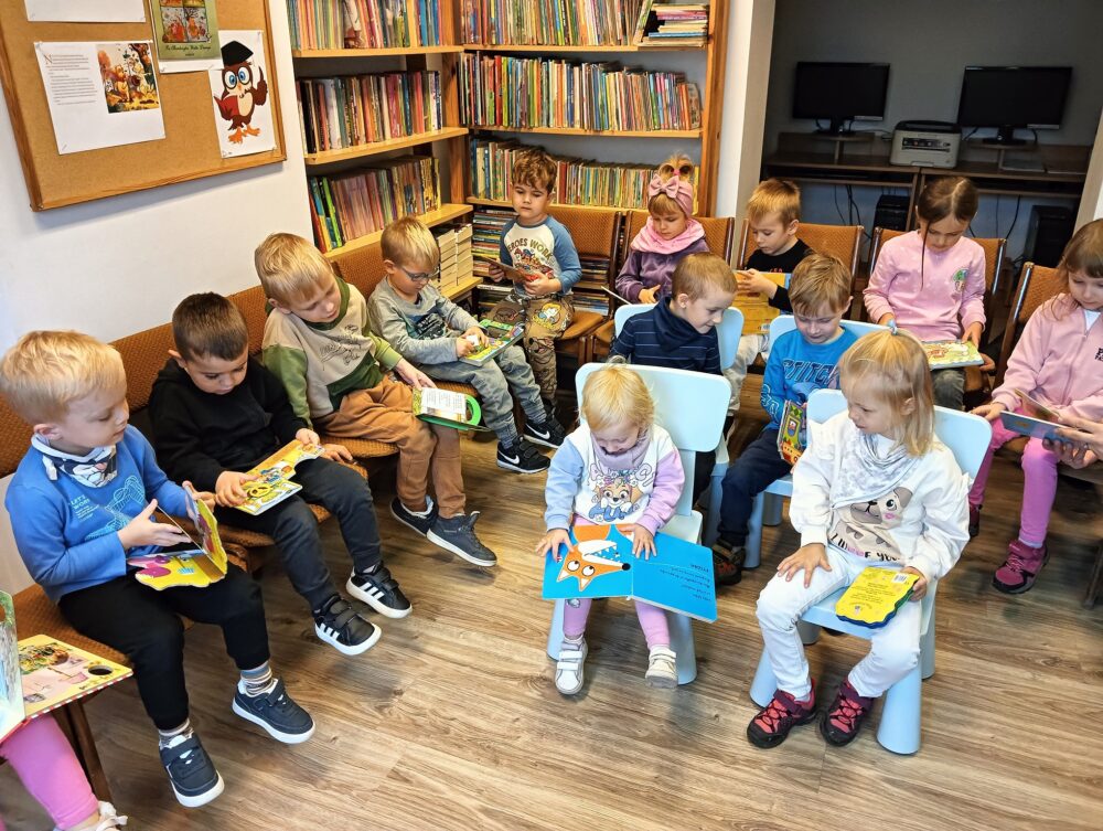 W dniu 31.10.2024r. w Filii bibliotecznej w Kopkach odbyło się głośne czytanie bajek Doroty Skwarek, które opowiadają o zwierzętach: koniach, świnkach, krowach i kaczuszkach. Dzieci z oddziału przedszkolnego z Publicznej Szkoły Podstawowej w Kopkach wysłuchały książeczki, która uczy jak nazywa się mama, tata, dziecko w poszczególnych gatunkach oraz jakie dary od nich otrzymujemy. Po wspólnym czytaniu tekstów dzieci z wielką radością obejrzały książeczki interaktywne, z Okienkami oraz 3D, pokolorowały rysunki zwierząt domowych oraz zagrały w grę zręcznościową „Kura i pióra”.