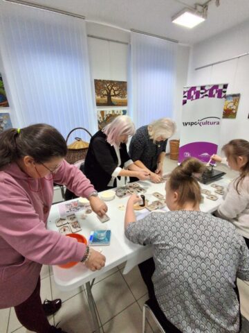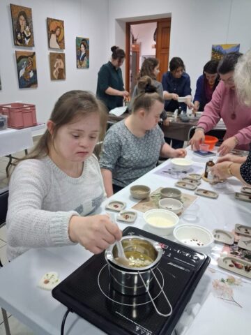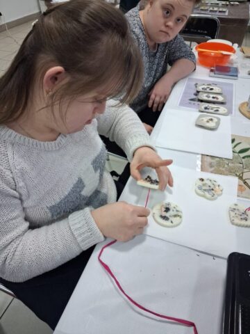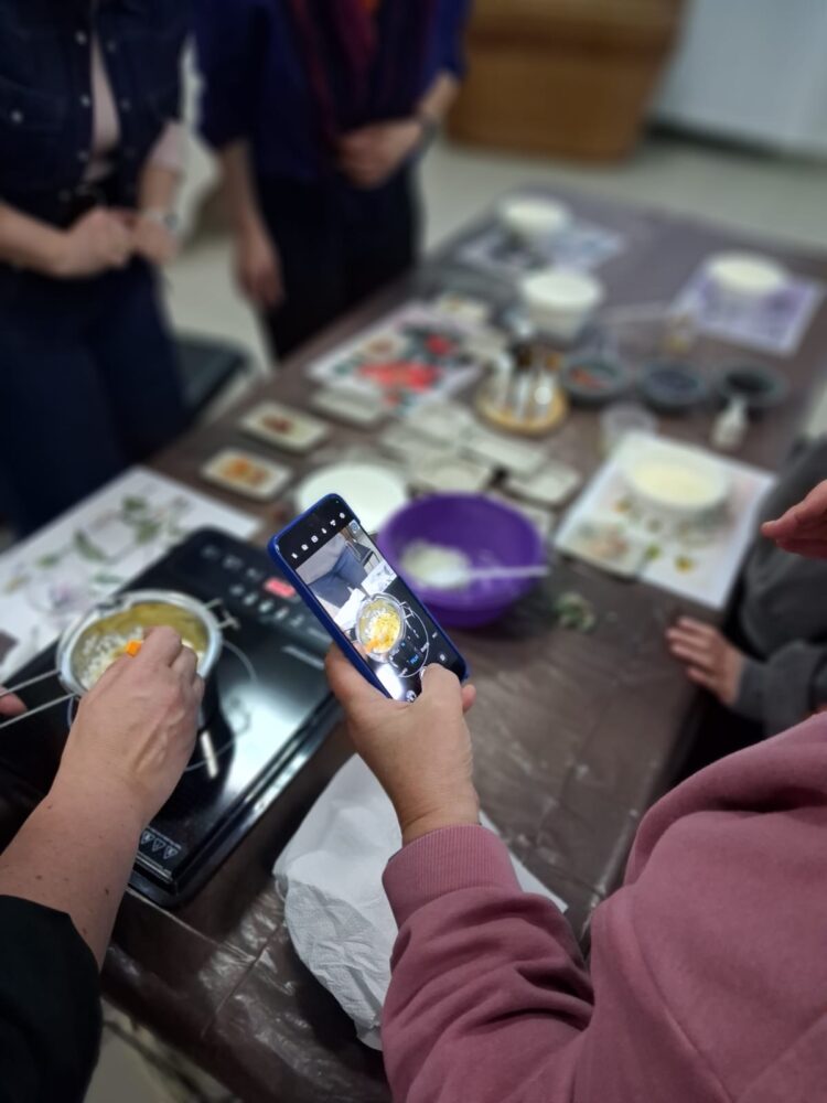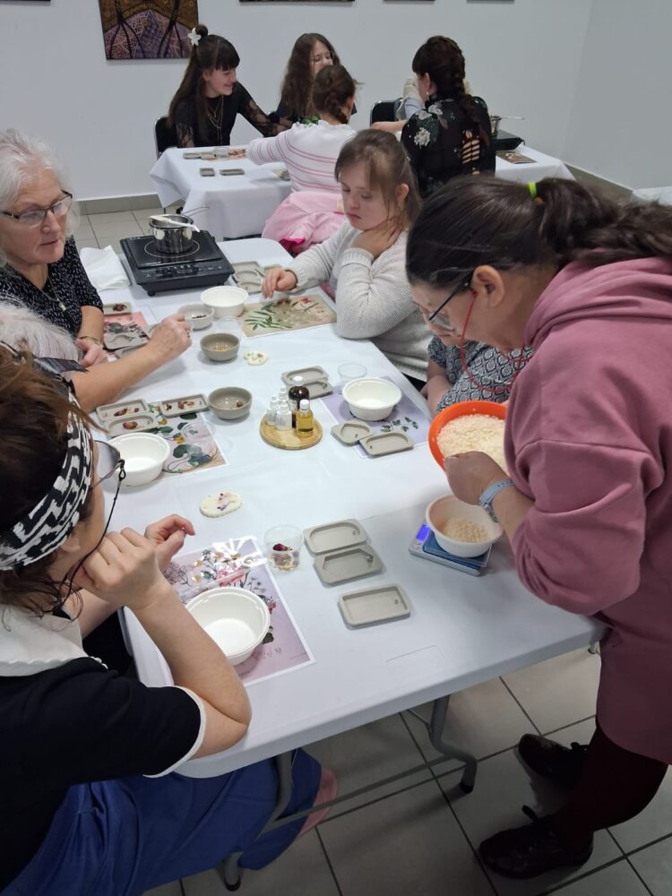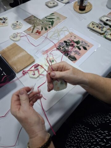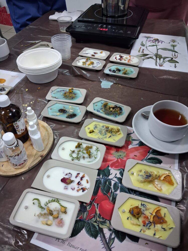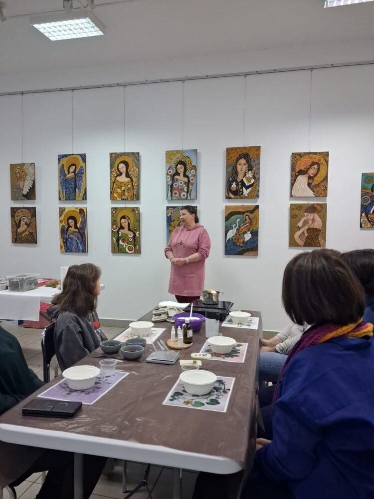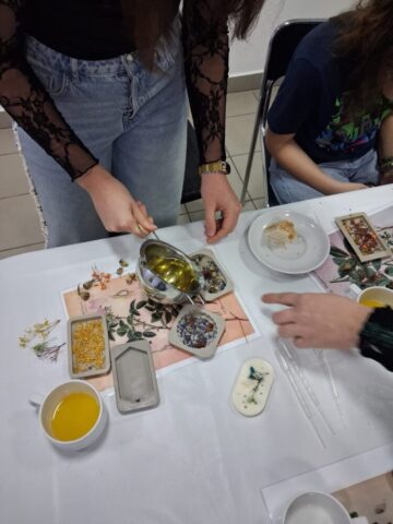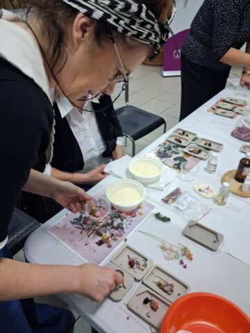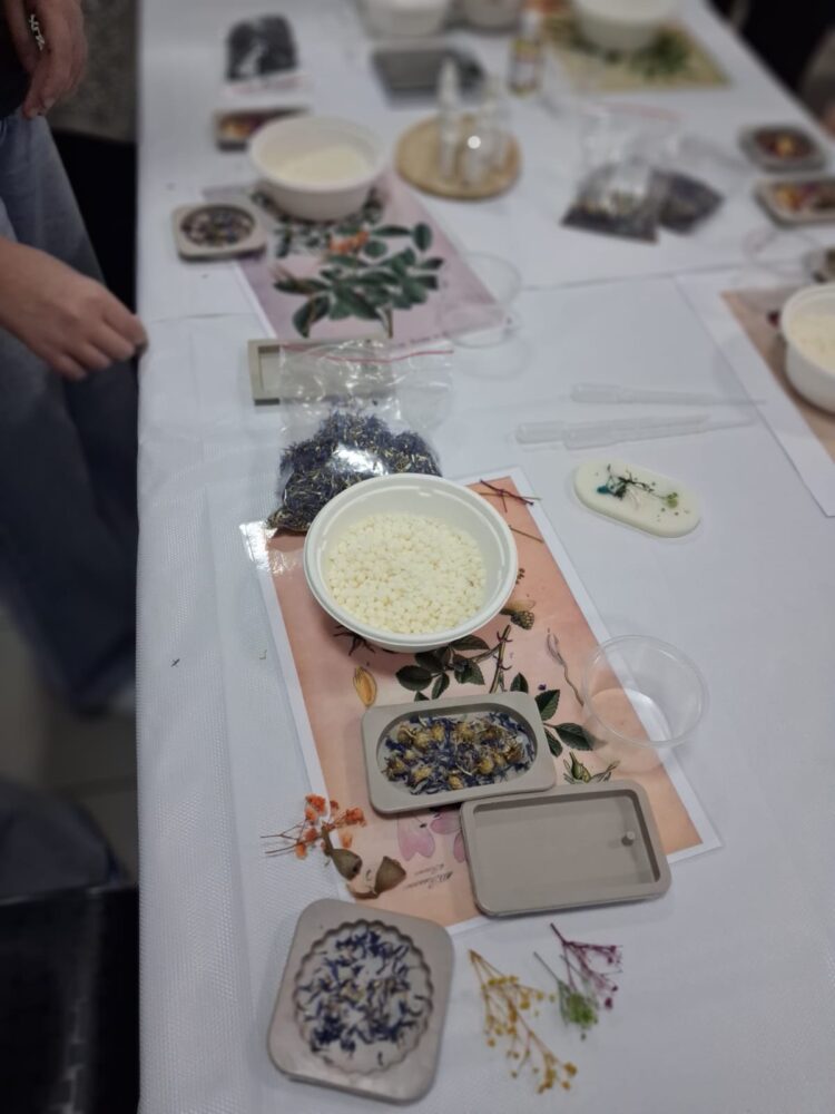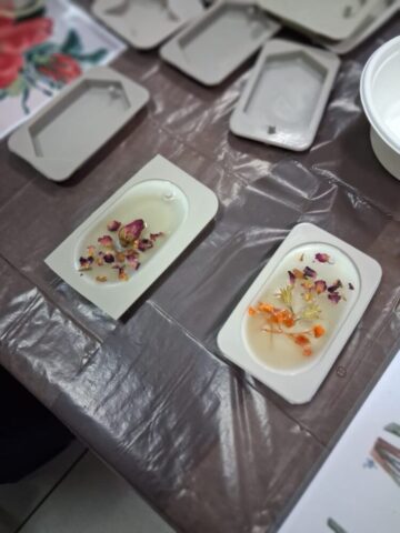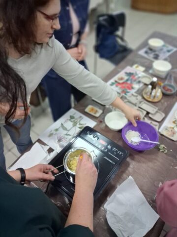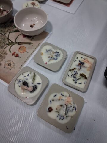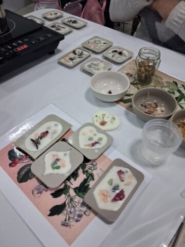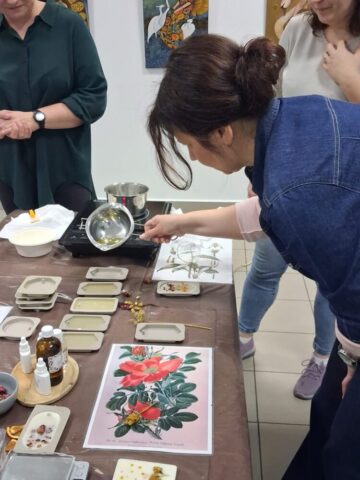 Pierwsze warsztaty polegały na tworzeniu tabliczek florenckich i poprowadziła je pani Alicja Siciak-Śledzińska. Zajęcia rozpoczęły się krótkim wprowadzeniem do tej formy rękodzieła. Następnie uczestniczki przystąpiły do pracy, przygotowując zapachowe tabliczki z wosku sojowego. Podczas warsztatów uczyły się dobierania składników, komponowania zapachów oraz dekorowania tabliczek suszonymi kwiatami i dodatkami.