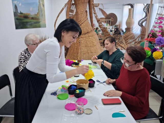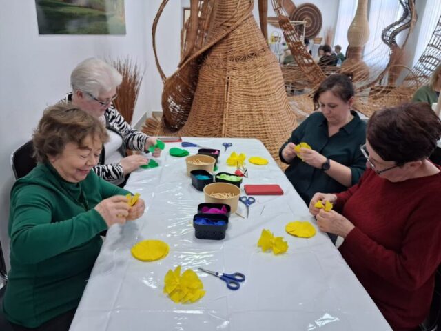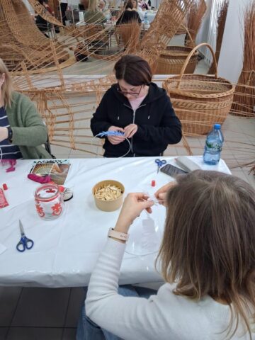 W niedzielę 8 marca 2026 r. kontynuowaliśmy cykl warsztatów artystycznych organizowanych w ramach projektu „Kobieca przestrzeń twórczości. Obchody Dnia Kobiet”. Spotkania ponownie odbyły się w Centrum Wikliniarstwa i zgromadziły uczestniczki zainteresowane rękodziełem oraz poznawaniem nowych technik twórczych.
