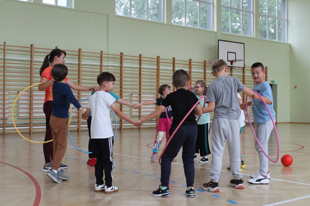 16 września 2025 r. odbyły się drugie warsztaty sportowo-ruchowe z grami i zabawami ruchowymi, wydolnościowymi, koordynacyjnymi oraz drużynowymi dla dzieci ze Specjalnego Ośrodka Szkolno-Wychowawczego, Publicznej Szkoły Podstawowej nr 1 i Publicznej Szkoły Podstawowej nr 2 w ramach projektu „Bliżej siebie – przełamujemy bariery. Edycja II”