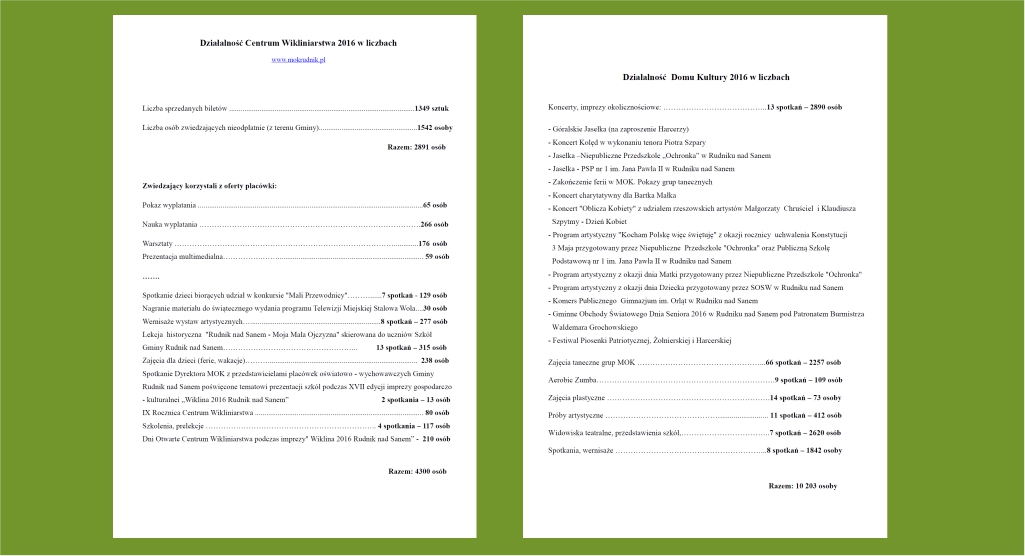 DZIAŁALNOŚĆ MIEJSKIEGO OŚRODKA KULTURY W RUDNIKU NAD SANEM