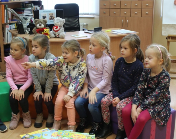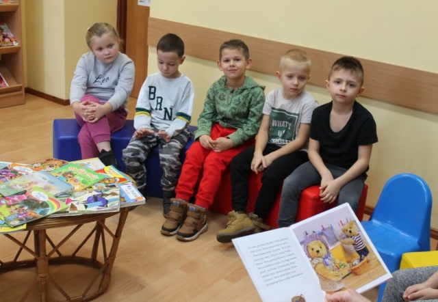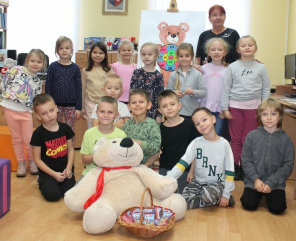 W piątek 24 listopada obchodziliśmy w naszej Bibliotece już po raz kolejny Światowy Dzień Pluszowego Misia. Z tej okazji wielbiciele tej sympatycznej dziecięcej przytulanki spotkali się w czytelni biblioteki. W spotkaniu uczestniczyła grupa „Kotki” z Przedszkola Miejskiego w Rudniku nad Sanem. Wspólna zabawa rozpoczęła się od przeczytania dzieciom książeczki pt. „Miś Brumi mały pomocnik”. Sześciolatki wykazały się niezwykłą aktywnością podczas zajęć, bardzo dobrze odpowiadały na pytania dotyczące wysłuchanego tekstu. W czasie zajęć dzieci oglądały książeczki, których bohaterami są misie, zapoznały się z historią pluszowego misia, nie mogło również zabraknąć „misiowych” zabaw. Na zakończenie były pamiątkowe zdjęcia z misiem i słodki upominek.