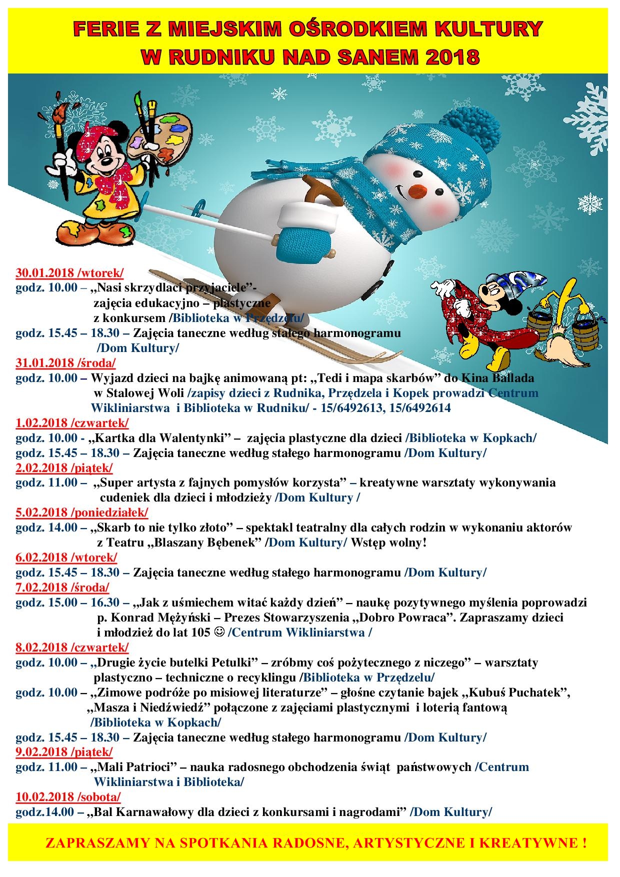Ferie 2018 w Miejskim Ośrodku Kultury w Rudniku nad Sanem