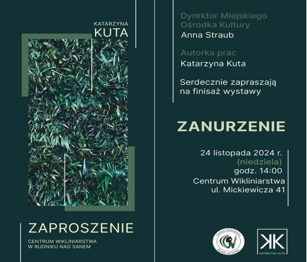 Serdecznie zapraszamy na wyjątkowy finisaż wystawy ZANURZENIE Katarzyny Kuta, który odbędzie 24 listopada 2024 r. o godz. 14.00.
