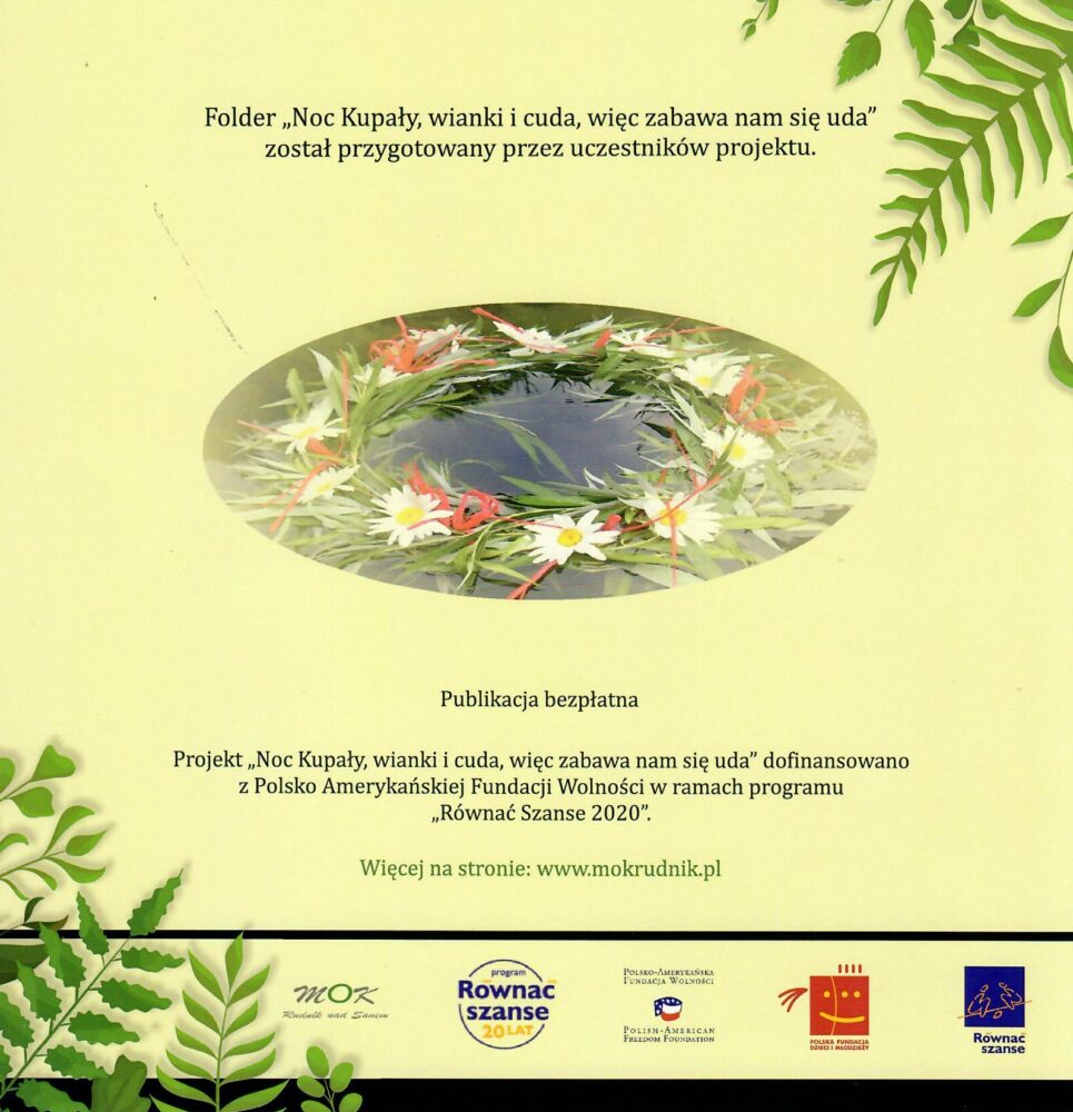 Folder „Noc Kupały WIANKI I CUDA, WIĘC ZABAWA NAM SIĘ UDA” wydany w ramach programu „Równać Szanse 2020”