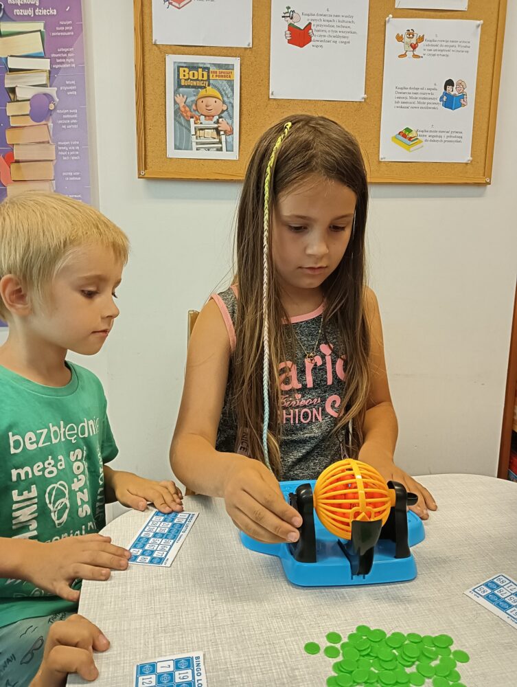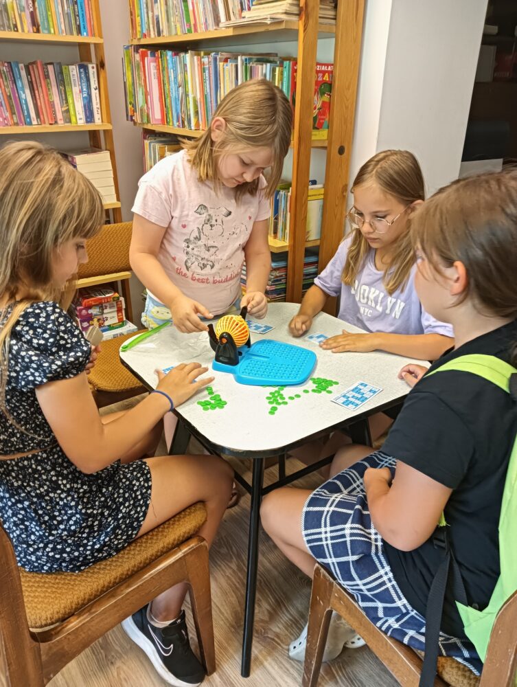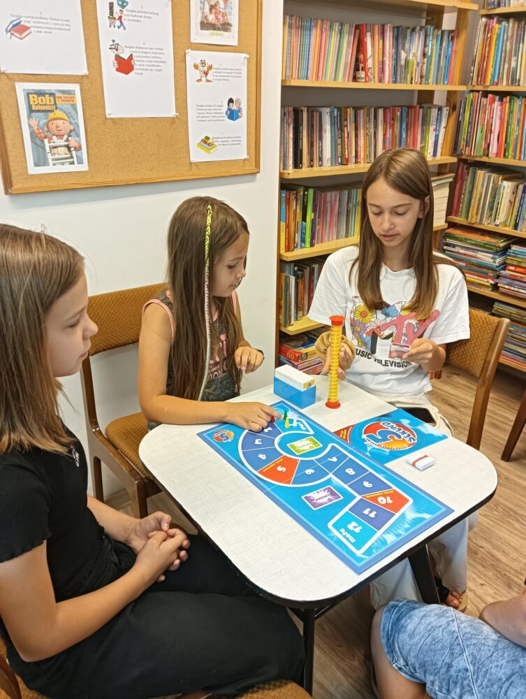 Dnia 11.08.2025r. w Fili bibliotecznej w Kopkach miało miejsce spotkanie przy grach planszowych i zręcznościowych. Wśród atrakcji, które urozmaiciły dzieciom wakacyjne zajęcia w bibliotece znalazły się: „5 sekund”, „Bingo”, „Memory”, gry karciane oraz mini ping – pong. Planszówki sprawiły dzieciom wiele radości. Była to dla nich nie tylko świetna zabawa w towarzystwie kolegów i koleżanek, ale również wspaniała lekcja planowania, spostrzegawczości i zasad fair play.
