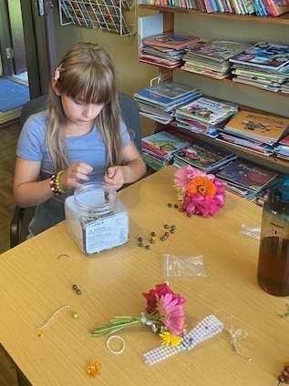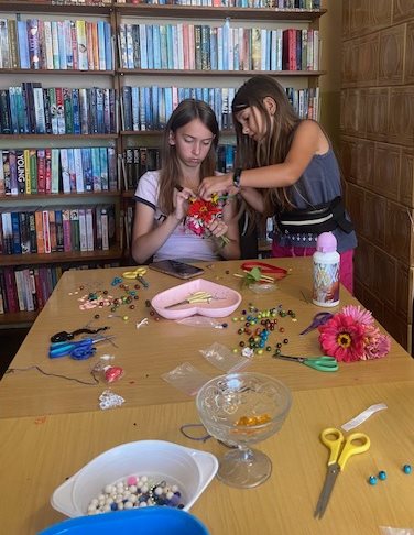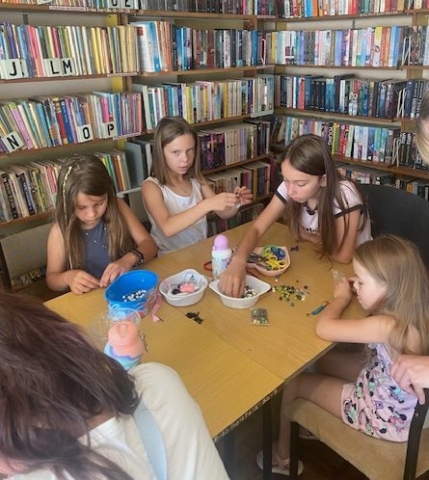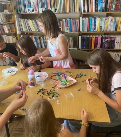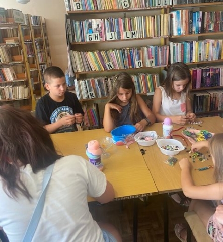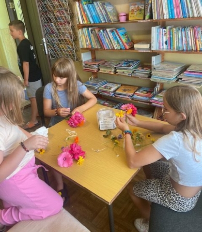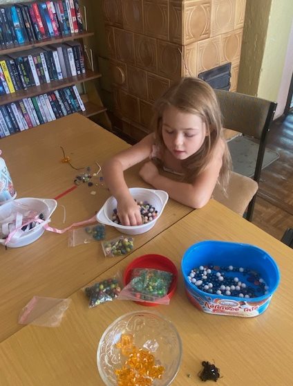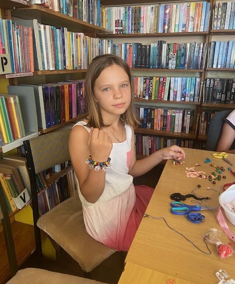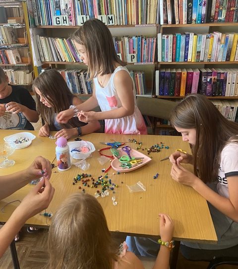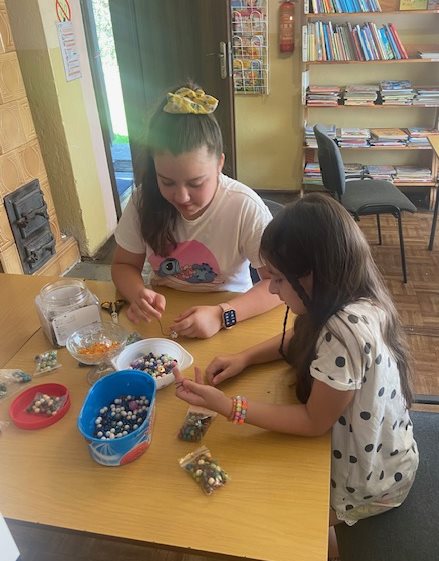 13 sierpnia 2025 r. w Filii bibliotecznej w Przędzelu zostały zorganizowane zajęcia wakacyjne, podczas których powstały ciekawe i kolorowe bransoletki według pomysłu dzieci.
