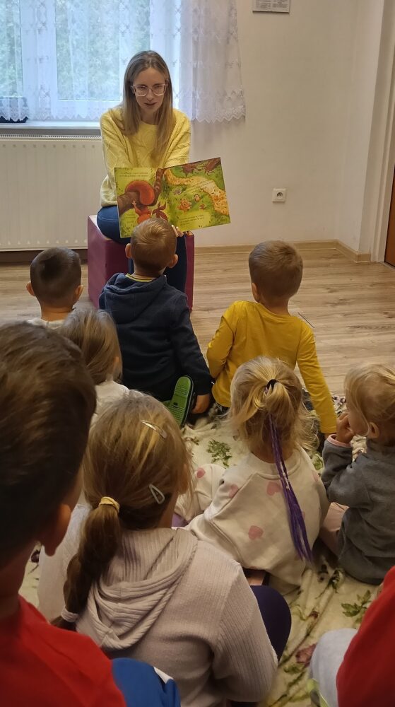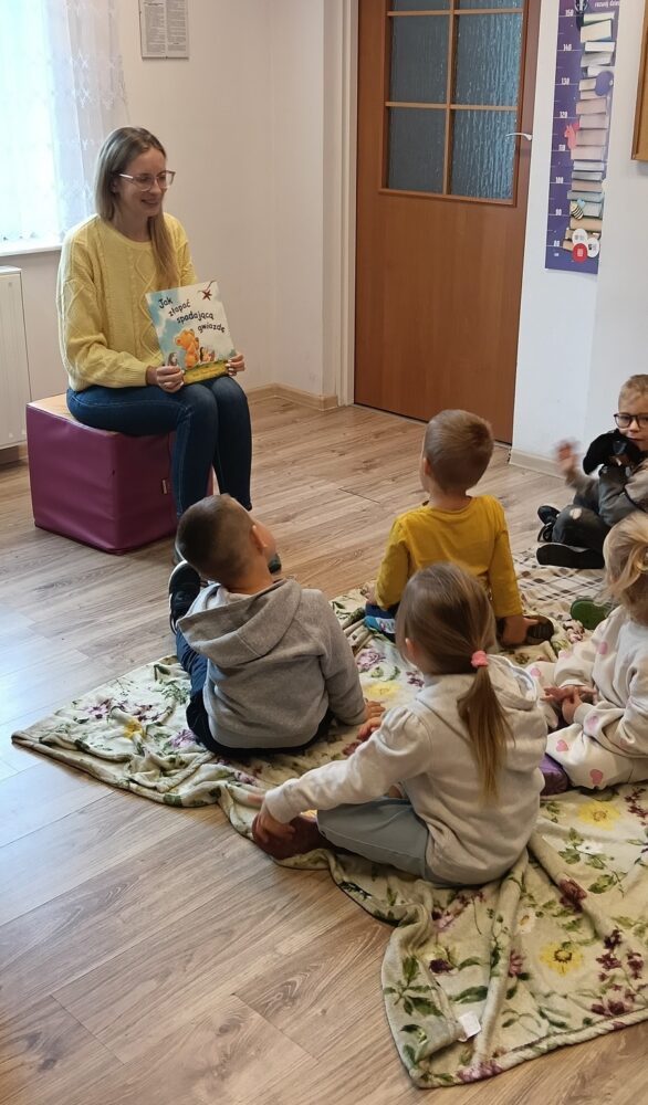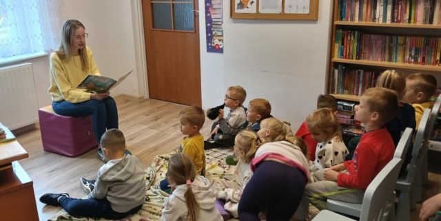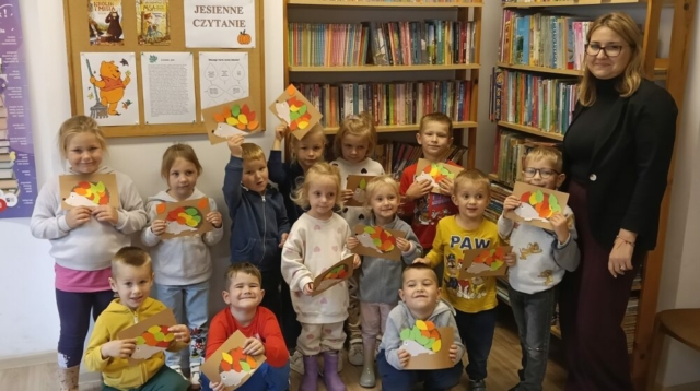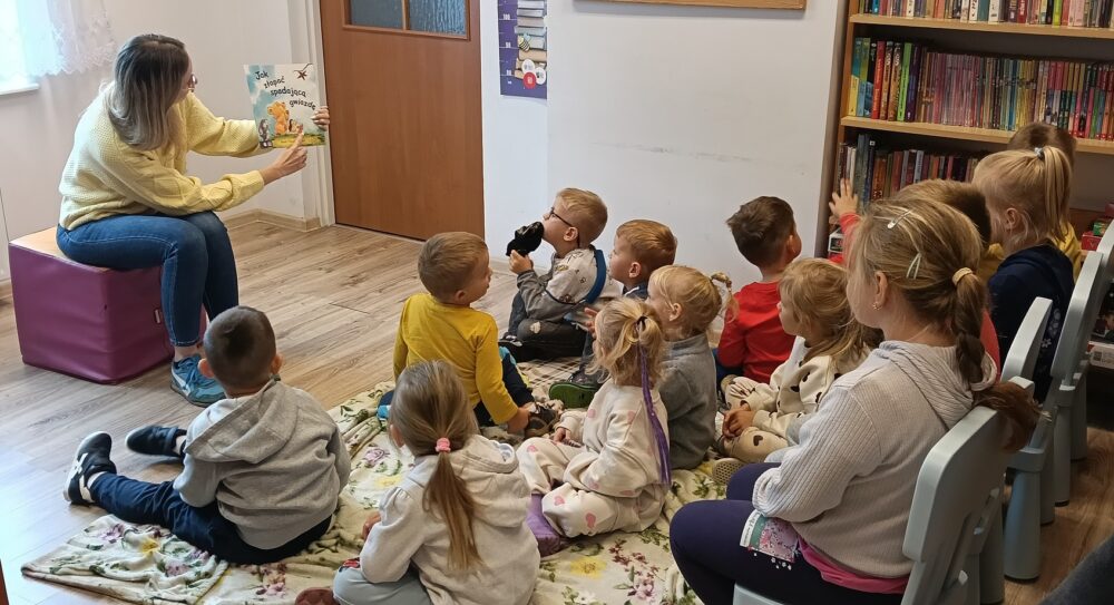 29 września 2025 roku w Filii Bibliotecznej w Kopkach obchodzono Ogólnopolski Dzień Głośnego Czytania. Z tej okazji najmłodsi uczestnicy z zaciekawieniem i w pełnym skupieniu wysłuchały bajki pt. „Jak złapać spadającą gwiazdę”, którą przeczytała pani bibliotekarka. Opowieść przedstawiała historię małego niedźwiadka, który marzył o złapaniu ostatniego jesiennego liścia, aby spełnić swoje najskrytsze życzenie. Po zakończeniu czytania dzieci wzięły udział w zabawie ze zwierzętami leśnymi, a następnie wykonały urocze jeżyki z kolorowego papieru. Spotkanie przebiegło w radosnej, twórczej atmosferze i z pewnością na długo pozostanie w pamięci małych uczestników.