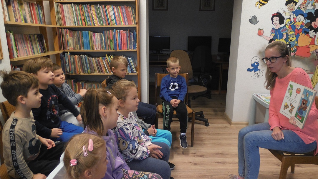 29.09.2022r. w Filii bibliotecznej w Kopkach odbyło się głośne czytanie książeczek dla dzieci o tematyce jesiennej. Klasa „0” pod opieką pani Marzeny Trybowskiej chętnie wysłuchała bajeczki „Misie – jesienne czary”, a także wiersza pt. „Jesienne skarby”. Na zakończenie spotkania dzieci za pomocą plasteliny oraz kredek stworzyły wielobarwne drzewka, liście oraz dynie.
