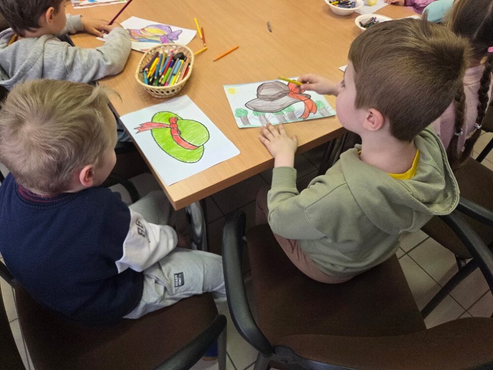 10 kwietnia 2026 r. dzieci z grupy „Misie” z Przedszkola Miejskiego w Rudniku nad Sanem odwiedziły bibliotekę. Spotkanie nie mogło odbyć się bez głośnego czytania, dlatego w jego ramach zorganizowano zajęcia, podczas których bibliotekarka, pani Teresa, przeczytała pierwszy rozdział książki pt. „Kapelusz Pani Wrony” autorstwa Danuty Perlak.