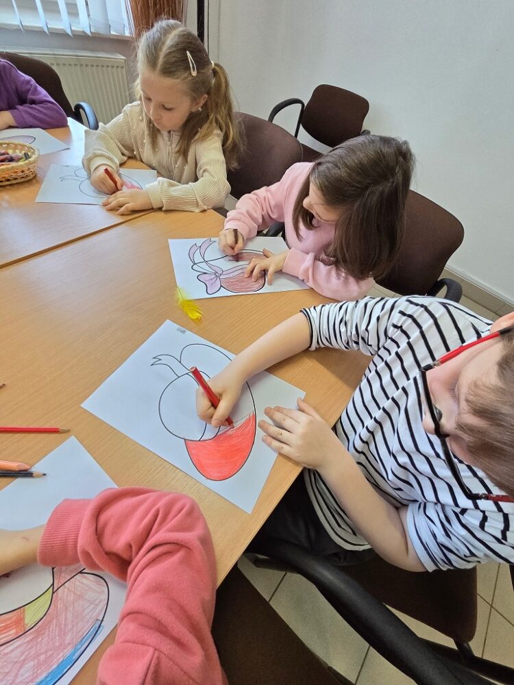 Na zakończenie spotkania dzieci wzięły udział w zabawie ruchowej oraz plastycznej.