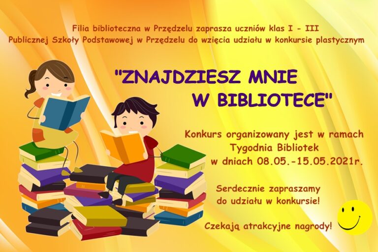 Zapraszamy do udziału w konkursie „ZNAJDZIESZ MNIE W BIBLIOTECE” uczniów PSP w Przędzelu