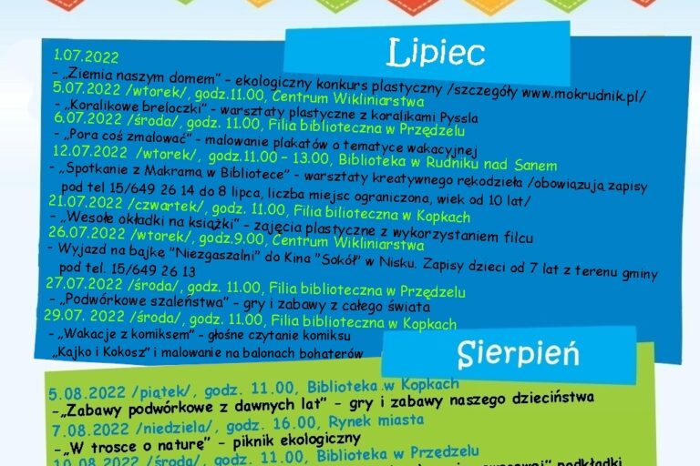 Wakacje 2022 w Miejskim Ośrodku Kultury w Rudniku nad Sanem