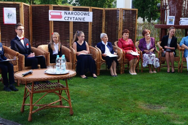 Narodowe Czytanie noweli „Katarynka” Bolesława Prusa na dziedzińcu Centrum Wikliniarstwa