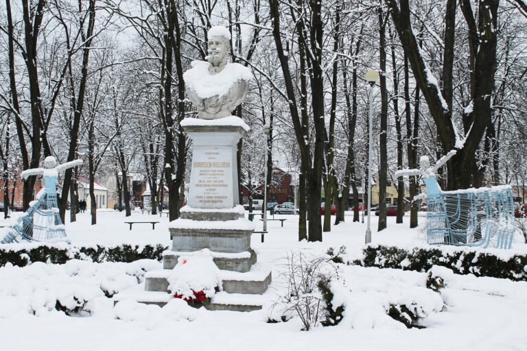 Wiklinowe rzeźby w zimowej szacie