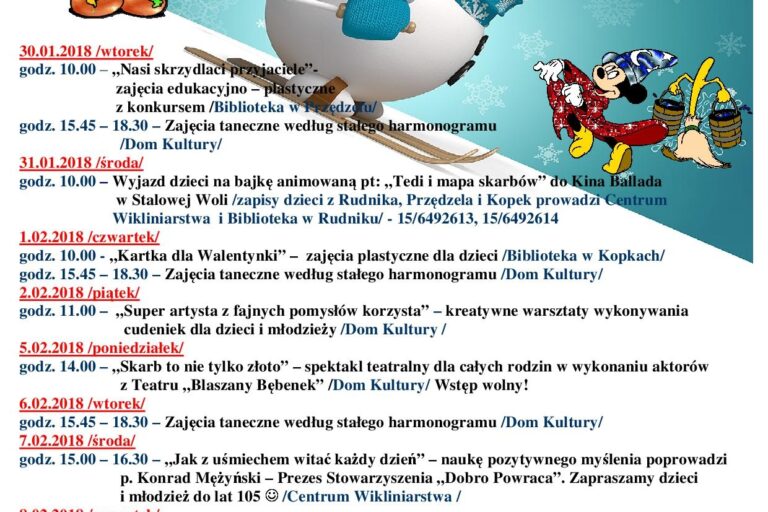 Ferie 2018 w Miejskim Ośrodku Kultury w Rudniku nad Sanem