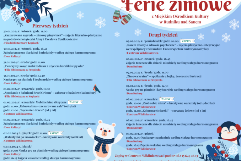 Zapraszamy na FERIE ZIMOWE z Miejskim Ośrodkiem Kultury