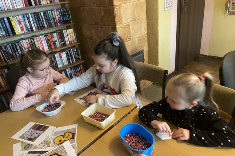 Zajęcia z koralikami pyssla w Filii bibliotecznej w Przędzelu