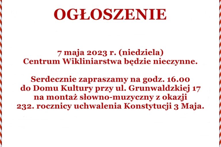 Centrum Wikliniarstwa nieczynne 7 maja 2023 r.