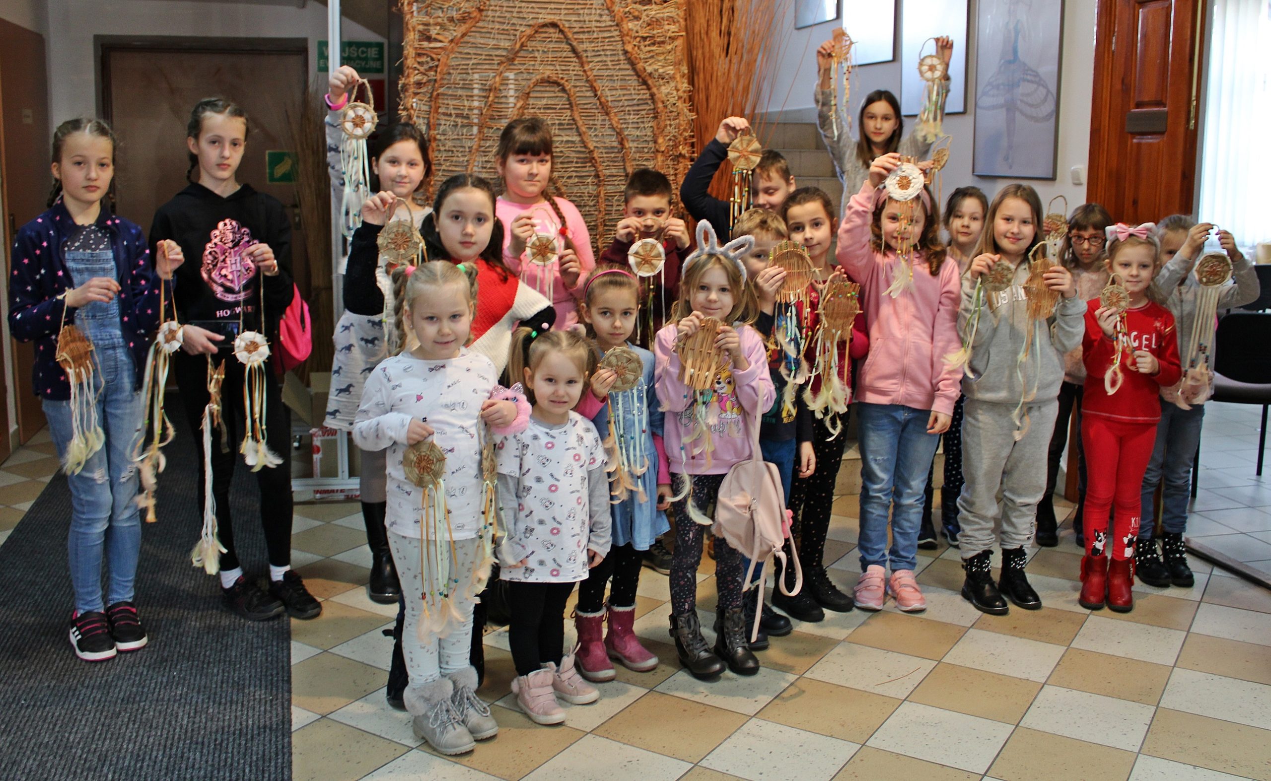 23.02.2022r. w Centrum Wikliniarstwa odbyły się kolejne zajęcia w ramach ferii zimowych. Tym razem tworzyliśmy wiklinowe łapacze snów, które ozdabialiśmy piórkami, sznurkami, tasiemkami i koralikami. W drugiej części spotkania uczestnicy zajęć ozdabiali suknię Pani Zimy śnieżynkami. Na zakończenie zajęć wszystkie dzieci otrzymały upominki za aktywną pracę podczas ferii 🙂