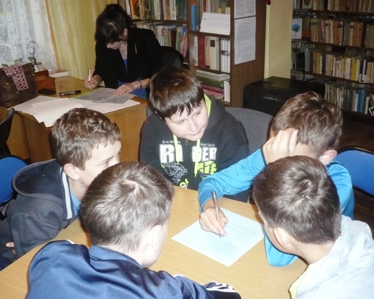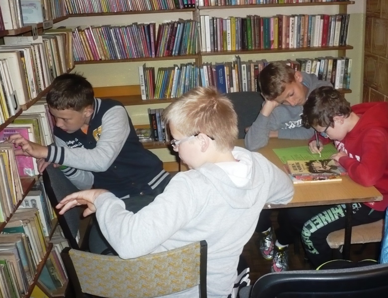 W czwartek 21 maja 2015 r. w Filii bibliotecznej w Przędzelu odbyła się lekcja biblioteczna dla uczniów kl.V PSzP (wych. p. Dominika Fluda). Wszyscy z przyjemnością i wielkim zaangażowaniem rozwiązywali krzyżówki, łamigłówki i zagadki związane z książkami ciesząc się z nagrody w postaci słodkiej niespodzianki.
