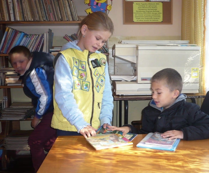 7.10.2014r. biblioteka w Przędzelu gościła uczniów kl.II z panią Małgorzatą Fluda. Na spotkaniu rozmawialiśmy o znaczeniu książek w naszym życiu, mówiąc także o potrzebie ich poszanowania. Dzieci komentowały, w jaki sposób należy obchodzić się z książką. Na zakończenie już małym uczestnikom dużą przyjemność sprawiło oglądanie i wybieranie książek do domu. Po słodkim poczęstunku, z książeczkami wracały do szkoły bardzo zadowolone.