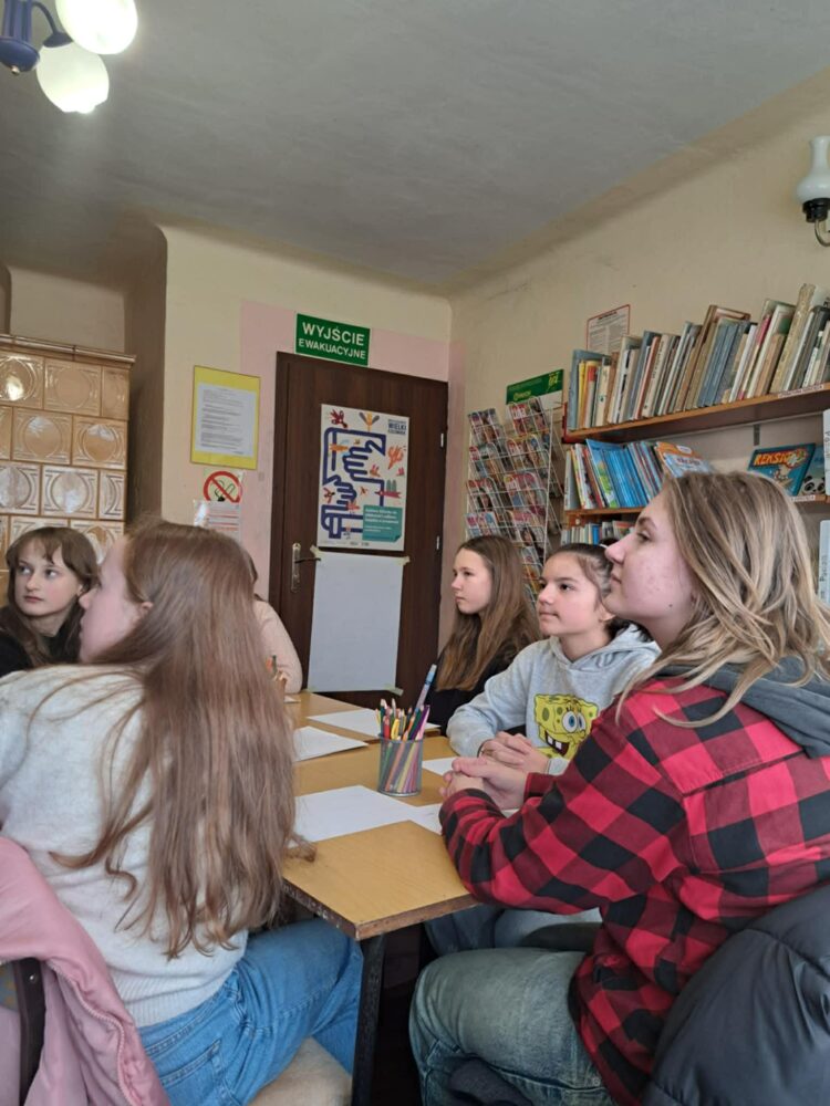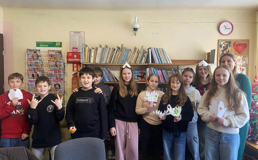17.12.2025r. w filii bibliotecznej w Przędzelu odbyła się lekcja biblioteczna pt. „Empatia z Brzydkim Kaczątkiem”, w której uczestniczyli uczniowie klasy V Publicznej Szkoły Podstawowej w Przędzelu wraz z p. Iwoną Zygmunt. Spotkanie było okazją do rozmów oraz refleksji nad znaczeniem empatii, akceptacji i wrażliwości na drugiego człowieka. Dzieci z dużym zaangażowaniem dzieliły się swoimi przemyśleniami, ucząc się, że każdy zasługuje na zrozumienie i szacunek — niezależnie od tego, jak wygląda lub czym się różni od innych.