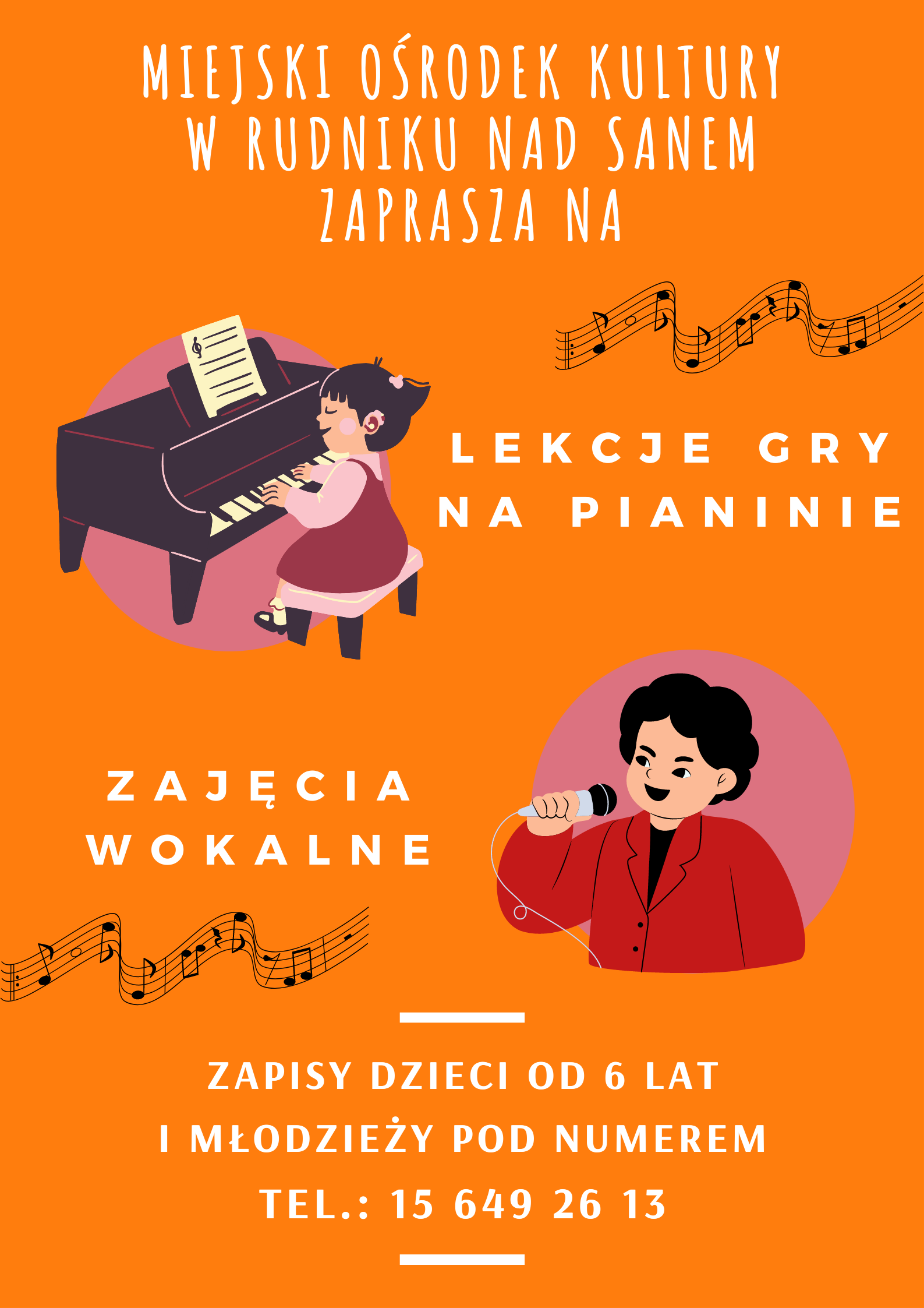 Lekcje gry na pianinie oraz zajęcia wokalne.
