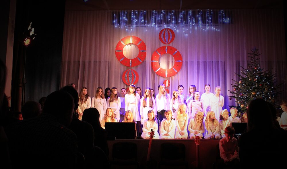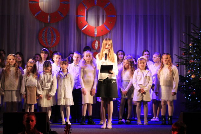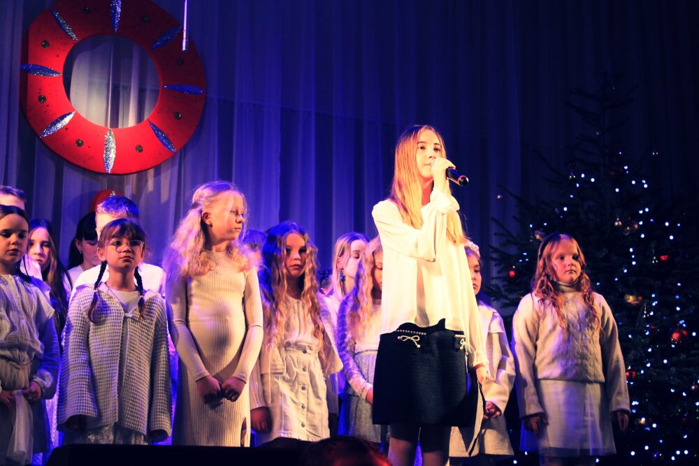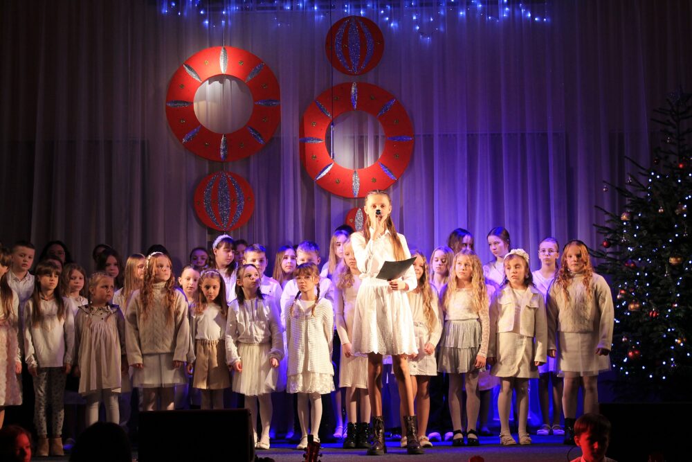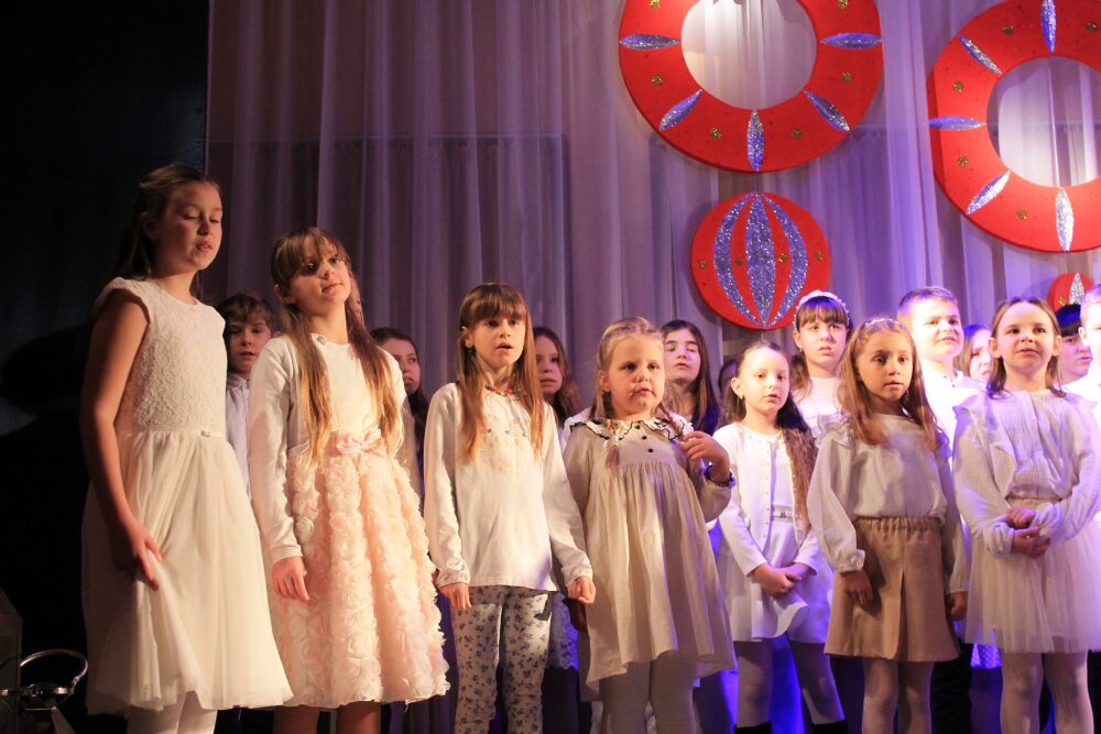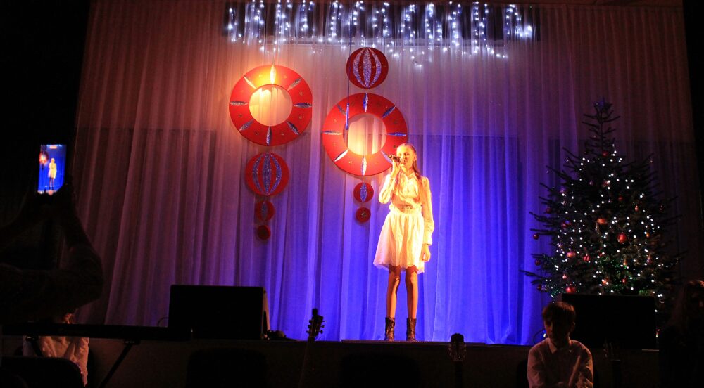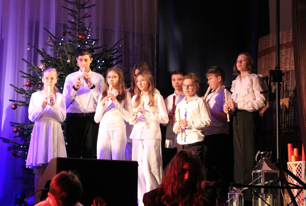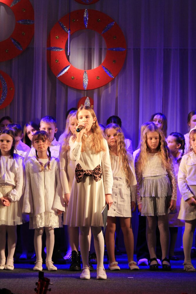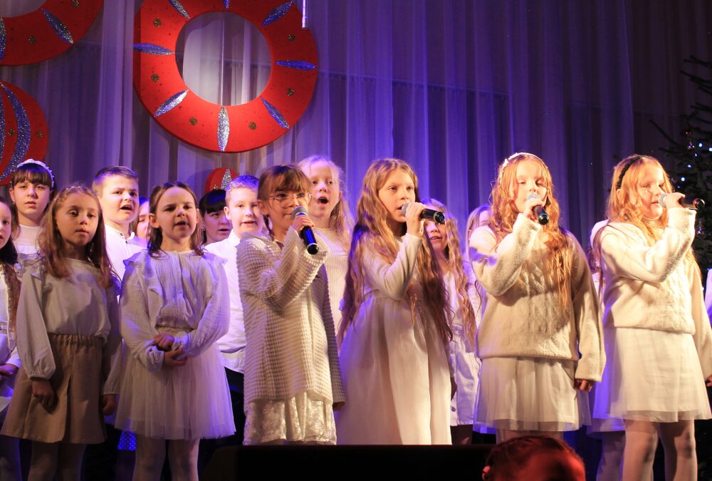W programie koncertu znalazły się najpiękniejsze utwory świąteczne i noworoczne – kolędy, pastorałki oraz znane i lubiane piosenki o zimowym, nastrojowym charakterze. Młodzi wykonawcy stworzyli ciepłą, radosną atmosferę, a ich talent został nagrodzony gromkimi brawami.