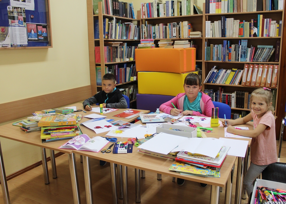24.08.2021r.                                                                                                                                                         „My się latem nie nudzimy, pośród książek się bawimy” – kolorowe zabawy z kredkami.