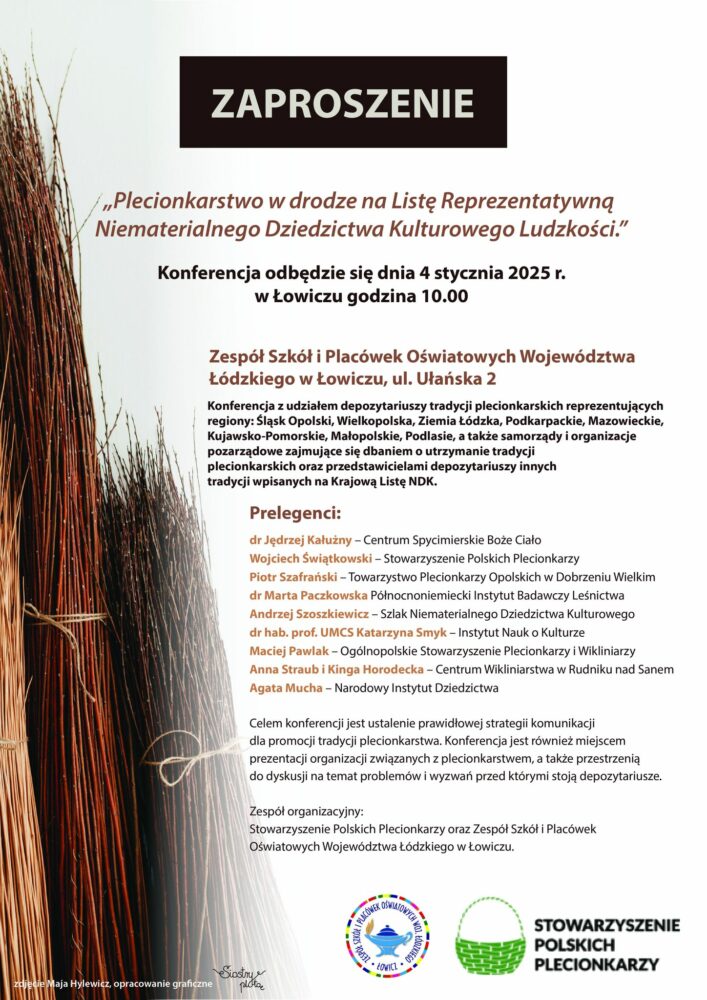 Delegacja Rudnika nad Sanem weźmie udział w Ogólnopolskim Spotkaniu Plecionkarzy na temat plecionkarstwa, które odbędzie się w Łowiczu. Kustosz Centrum Wikliniarstwa Kinga Horodecka przedstawi „Historię wikliniarstwa zapoczątkowaną przez Ferdynanda Hompescha”.