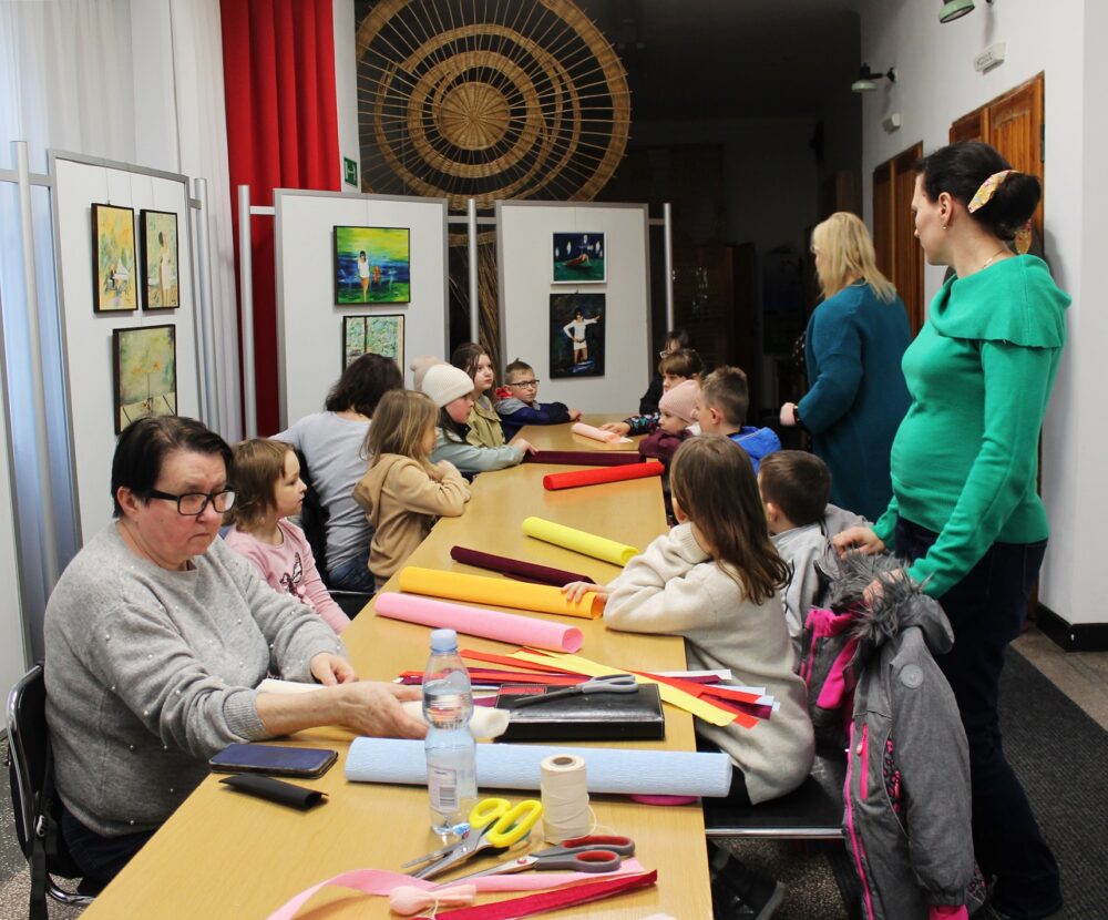 13 marca 2024 r. w Domu Kultury odbyła się pierwsza część warsztatów tworzenia palm wielkanocnych. Uczestnicy podczas spotkania wykonali kolorowe kwiaty z bibuły, które w przyszłym tygodniu posłużą jako elementy dekoracyjne powstałych palm.