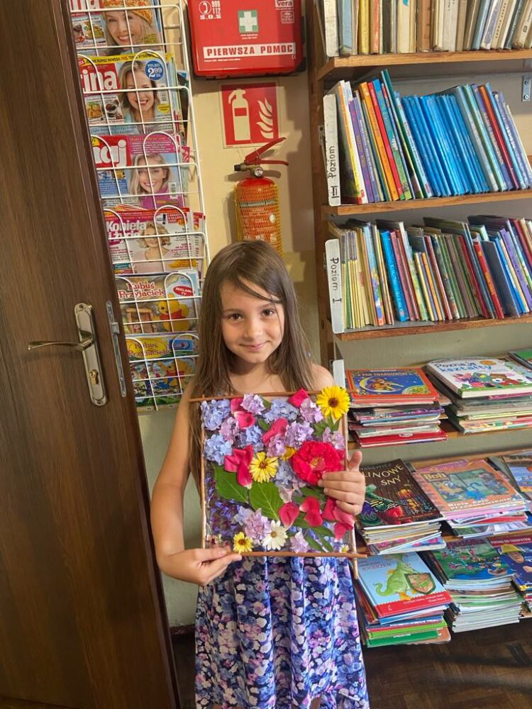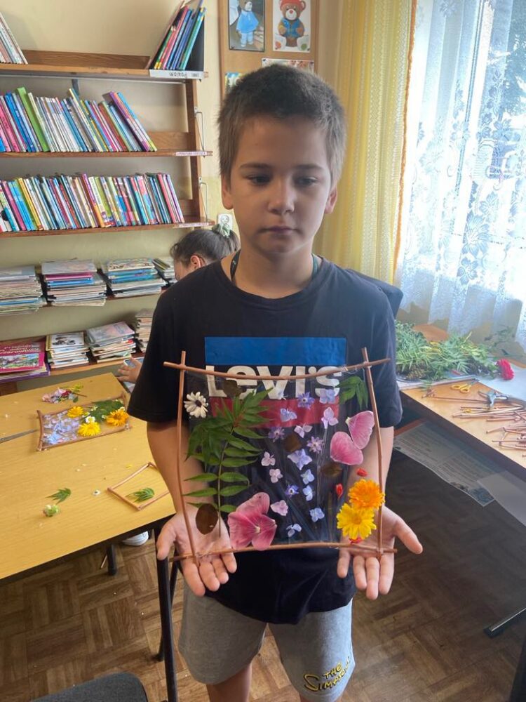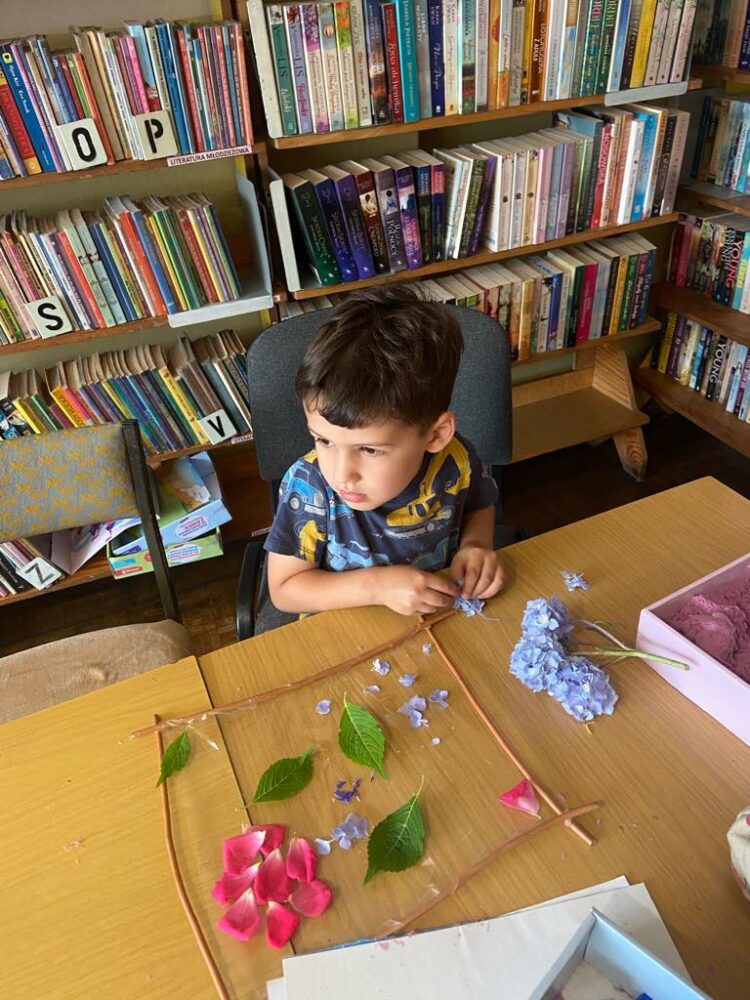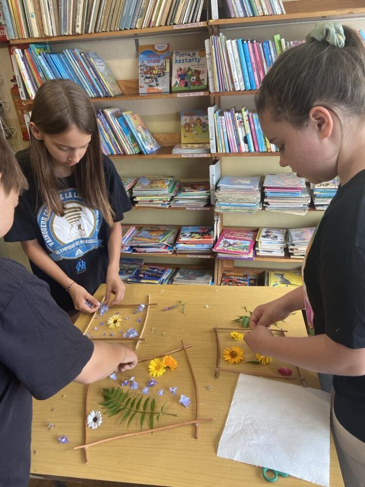 09 lipca 2025 r. w Filii bibliotecznej w Przędzelu odbyły się pierwsze zajęcia wakacyjne. Podczas warsztatów dzieci tworzyły naturalne obrazy z kwiatów, traw, liści i wikliny. Spotkanie sprawiło dzieciom dużo radości i pozwoliło spędzić czas w przyjaznej atmosferze.