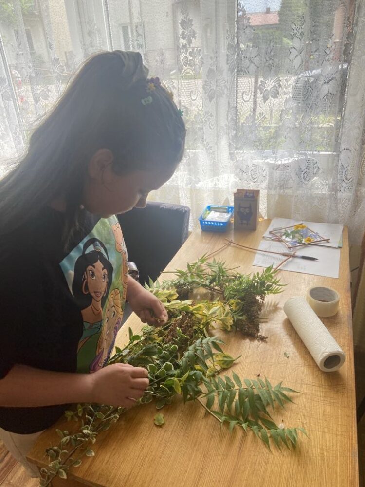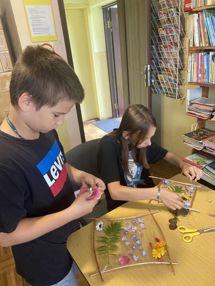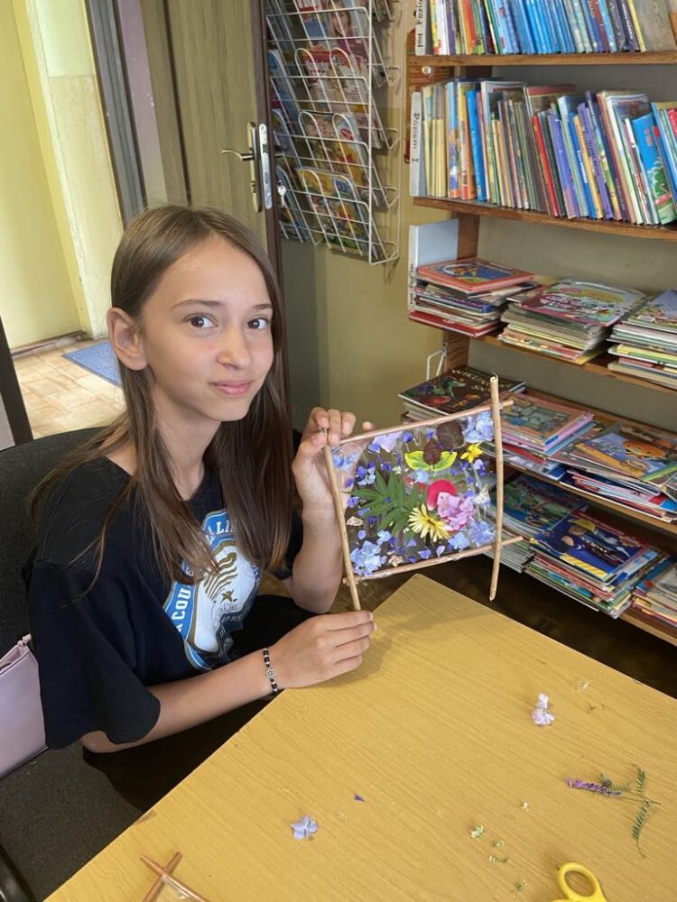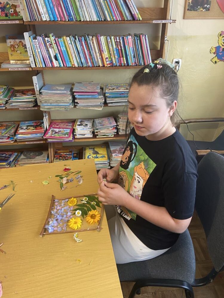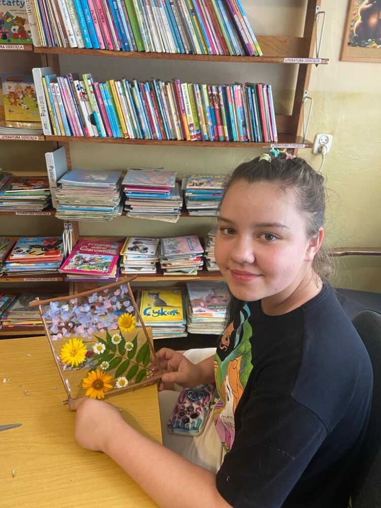 09 lipca 2025 r. w Filii bibliotecznej w Przędzelu odbyły się pierwsze zajęcia wakacyjne. Podczas warsztatów dzieci tworzyły naturalne obrazy z kwiatów, traw, liści i wikliny. Spotkanie sprawiło dzieciom dużo radości i pozwoliło spędzić czas w przyjaznej atmosferze.