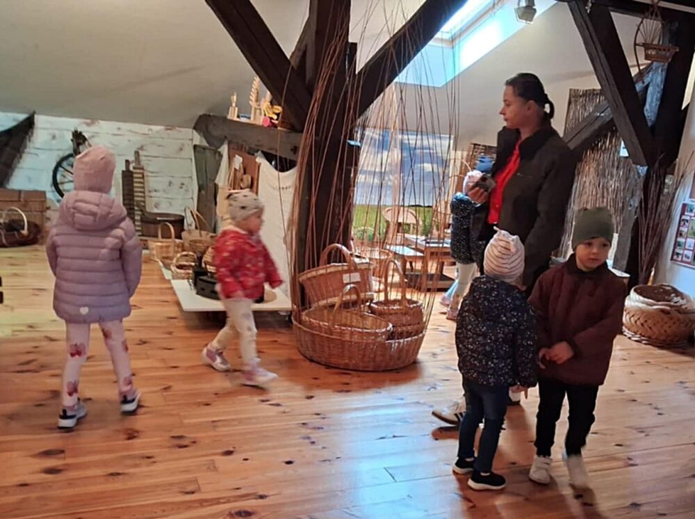1.10.2025r. przedszkolaki z grupy „Słoneczek” i „Tygrysków” z Huty Krzeszowskiej zwiedziły Centrum Wikliniarstwa oraz wzięły udział w pokazie wyplatania.