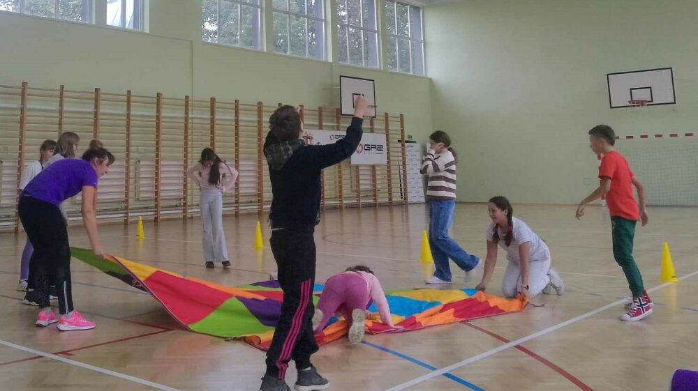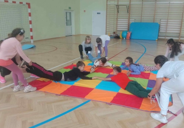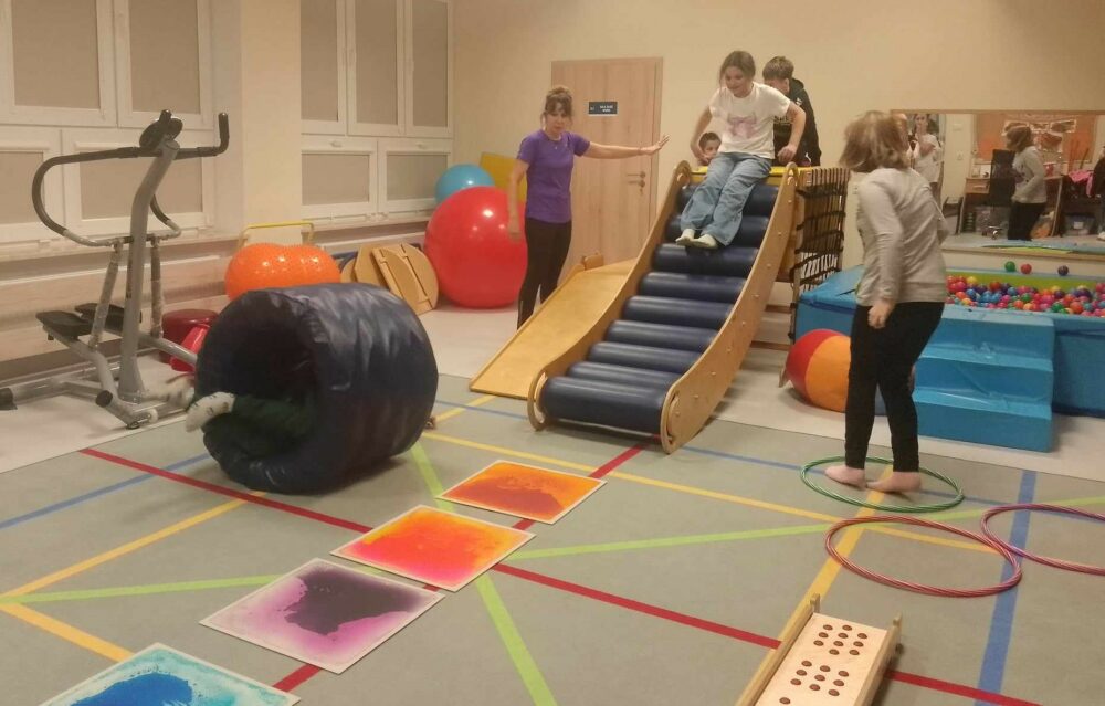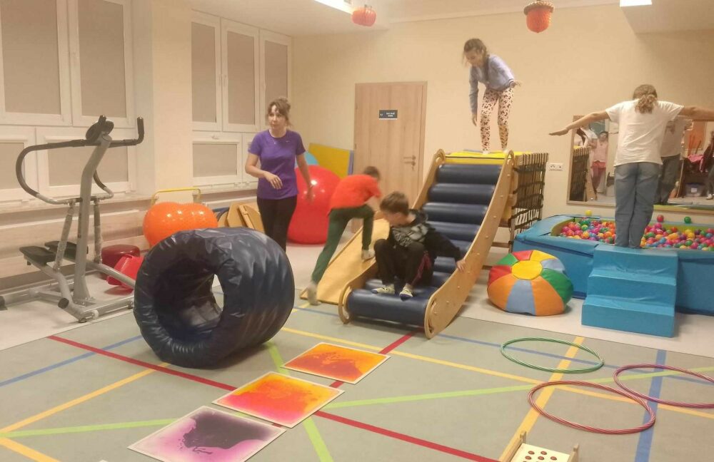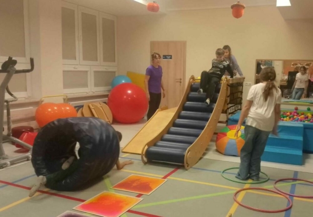02 października 2024 r. odbyły się pierwsze warsztaty sportowe z grami i zabawami ruchowymi dla dzieci ze Specjalnego Ośrodka Szkolno-Wychowawczego, Publicznej Szkoły Podstawowej nr 1 i Publicznej Szkoły Podstawowej nr 2 w ramach projektu „Bliżej siebie – przełamujemy bariery”. Poprowadzili je doświadczeni fizjoterapeuci i oligofrenopedagodzy, którzy przygotowali ćwiczenia zespołowe, ogólnorozwojowe, koordynacyjne i wydolnościowe. Zajęcia zostały zorganizowane w Specjalnym Ośrodku Szkolno-Wychowawczym na sali gimnastycznej oraz w sali do zajęć integracyjno-sensorycznych, co pozwoliło dzieciom w pełni sprawnym zobaczyć i zapoznać się ze sprzętem i miejscem, w jakim na co dzień przebywają ich rówieśnicy.
