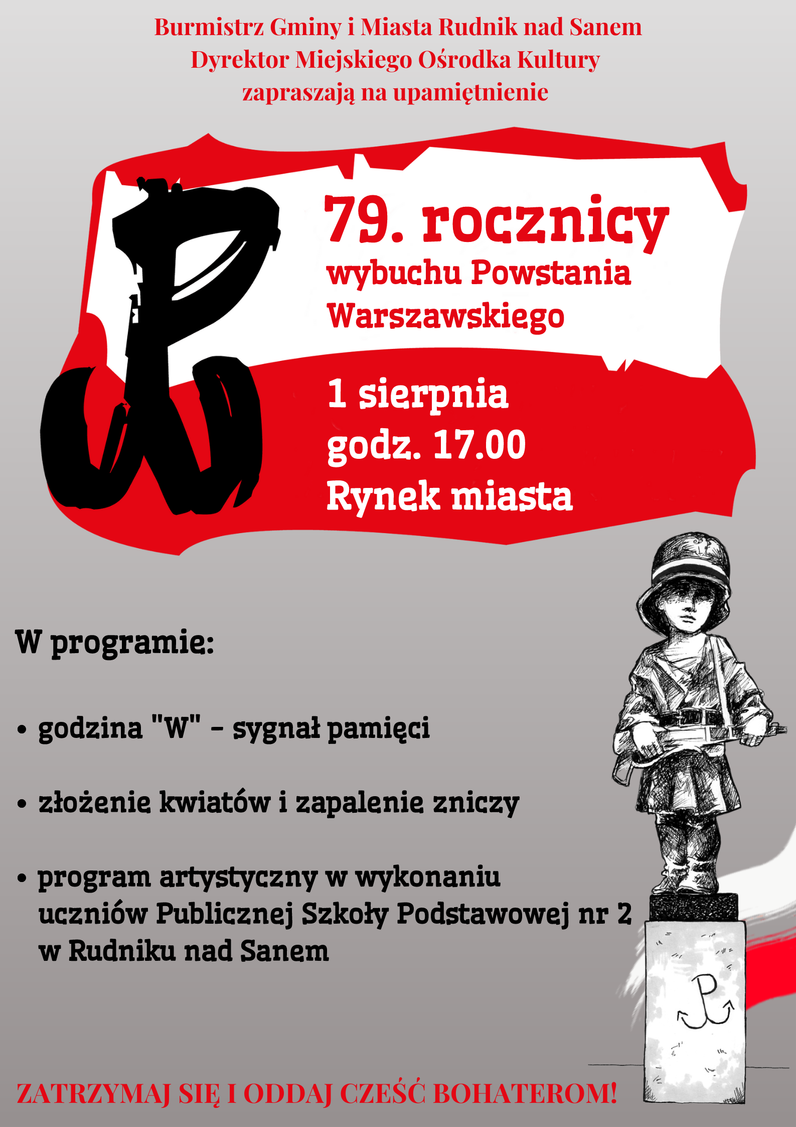 Serdecznie zapraszamy na upamiętnienie 79. rocznicy wybuchu Powstania Warszawskiego