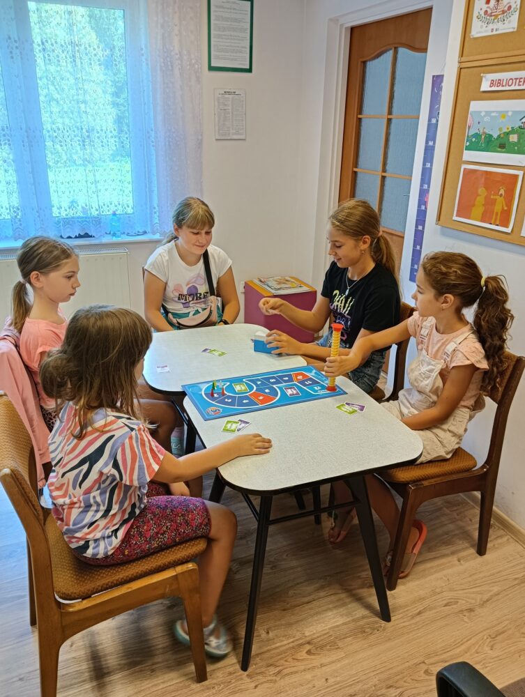 W drugim miesiącu tegorocznych wakacji filia biblioteczna w Kopkach zorganizowała kolejny cykl zajęć wakacyjnych dla dzieci. Najmłodsi czytelnicy poznali zabawną historię kota łobuza z książki pt. „Cukierku, ty łobuzie!” oraz samodzielnie wykonali bohatera lektury za pomocą plasteliny i diamencików. Następnie wzięli udział w letnich rozgrywkach planszowych, podczas których zagrali w nowoczesne gry, między innymi „5 sekund” oraz „Boom, Boom”.
