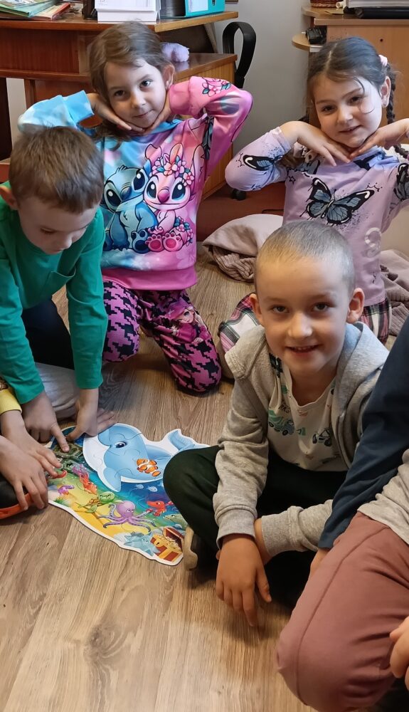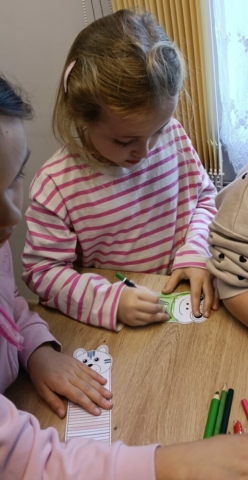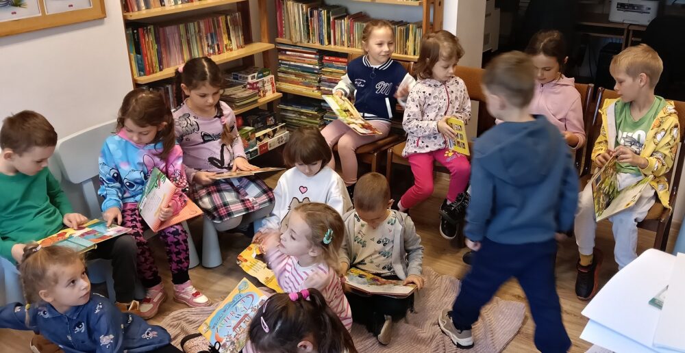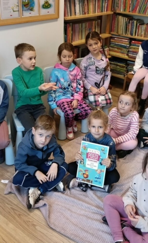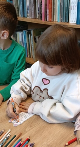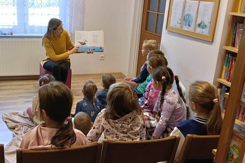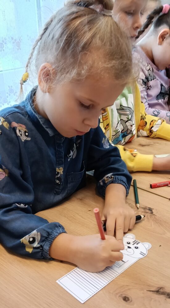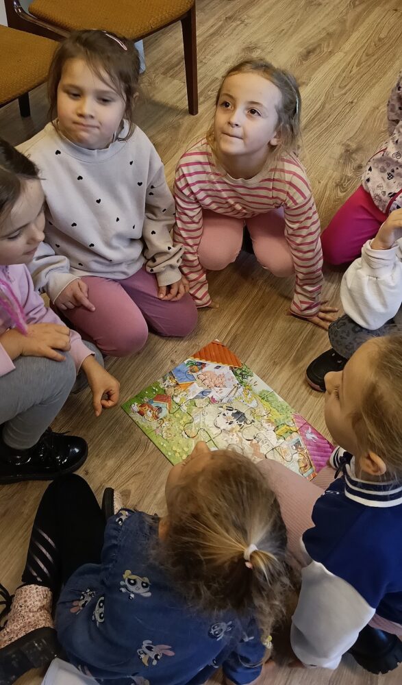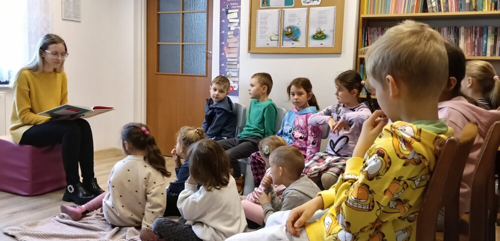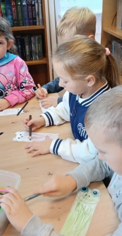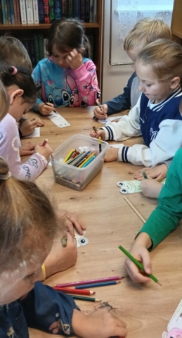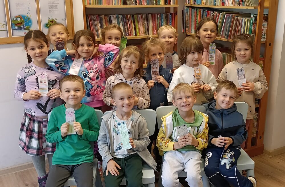 30 października 2025 roku w Filii Bibliotecznej w Kopkach odbyło się radosne spotkanie czytelnicze z udziałem uczniów klasy „0” z Publicznej Szkoły Podstawowej im. ks. Jerzego Popiełuszki w Kopkach. Dzieci z zaciekawieniem słuchały wierszy polskich poetów, m.in. Aleksandra Fredry i Tadeusza Śliwiaka, a następnie wspólnie układały puzzle ze zwierzętami. Na zakończenie zajęć każdy uczestnik wykonał własnoręcznie kolorową zakładkę do książki w kształcie kotka, żabki lub owieczki. Spotkanie upłynęło w ciepłej, pełnej uśmiechu atmosferze, a mali uczestnicy udowodnili, że czytanie może być świetną zabawą!