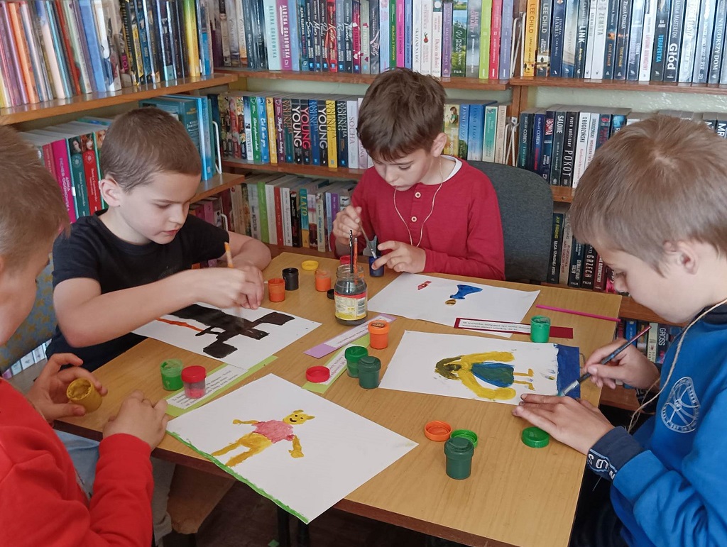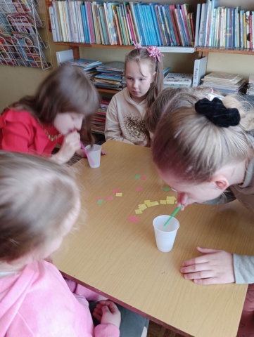 10 maja 2023 r. w ramach Tygodnia Bibliotek Filię biblioteczną w Przędzelu odwiedzili uczniowie kl. II wraz z wychowawczynią p. Małgorzatą Fludą. Dzieci wysłuchały wiersza Marii Brody-Bajak pt. „W świecie baśni” i opowiadały o swoich ulubionych bajkach. Z „czarodziejskiej” torby losowały rekwizyty i odgadywały postaci z bajek lub tytuły baśni. Zadaniem „małych detektywów” było odszukać pośród książek w bibliotece ukryte zagadki, rozwiązać je i namalować obrazy. Powstały naprawdę piękne prace.