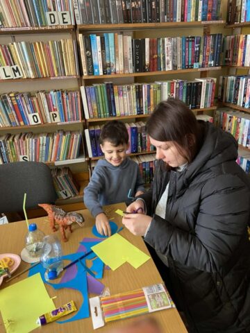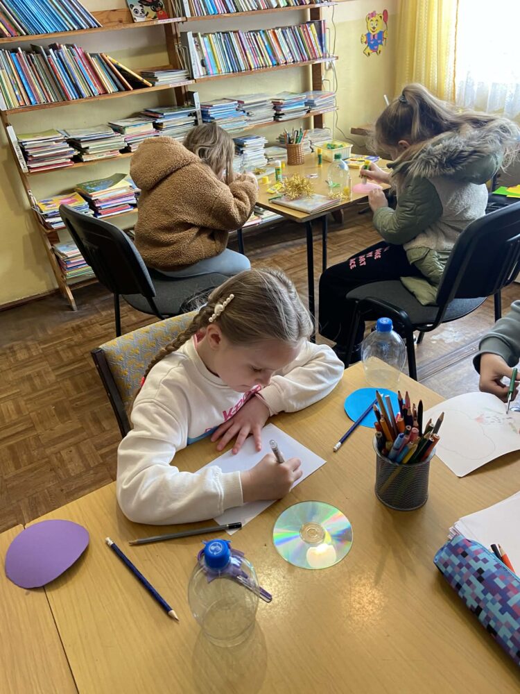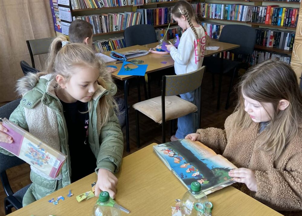 Pod okiem pani bibliotekarki dzieci z ogromnym zaangażowaniem tworzyły wyjątkowe prace plastyczne. Z plastikowych kubków powstały urocze, uśmiechnięte bałwanki, a z butelek i różnorodnych materiałów – kreatywne „zimowe kule”, przypominające małe, magiczne śnieżne kompozycje. Nie zabrakło kolorowego papieru, kleju, brokatu i dziecięcej wyobraźni, dzięki którym każda praca była jedyna w swoim rodzaju.