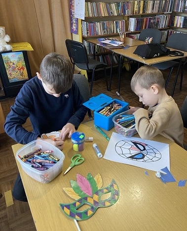 19 lutego 2025 r. w ramach ferii zimowych w Filii bibliotecznej w Przędzelu zostały zorganizowane zajęcia, podczas których powstały maski karnawałowe.