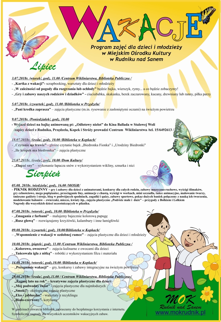 Wakacje 2018 w Miejskim Ośrodku Kultury w Rudniku nad Sanem