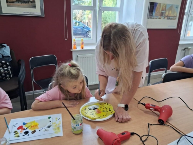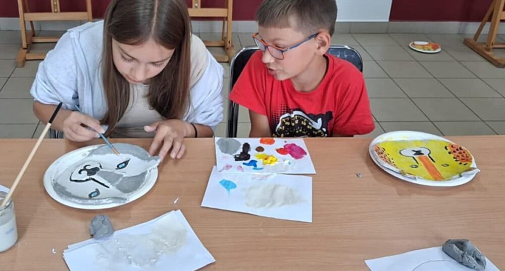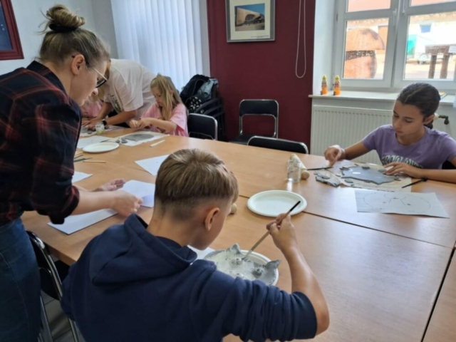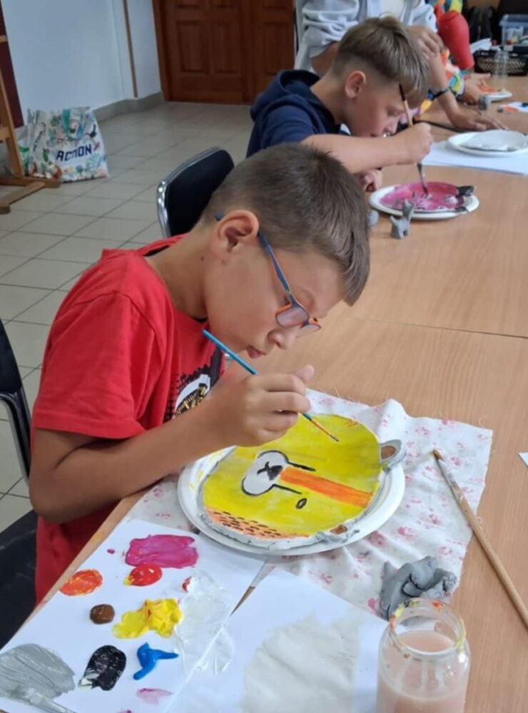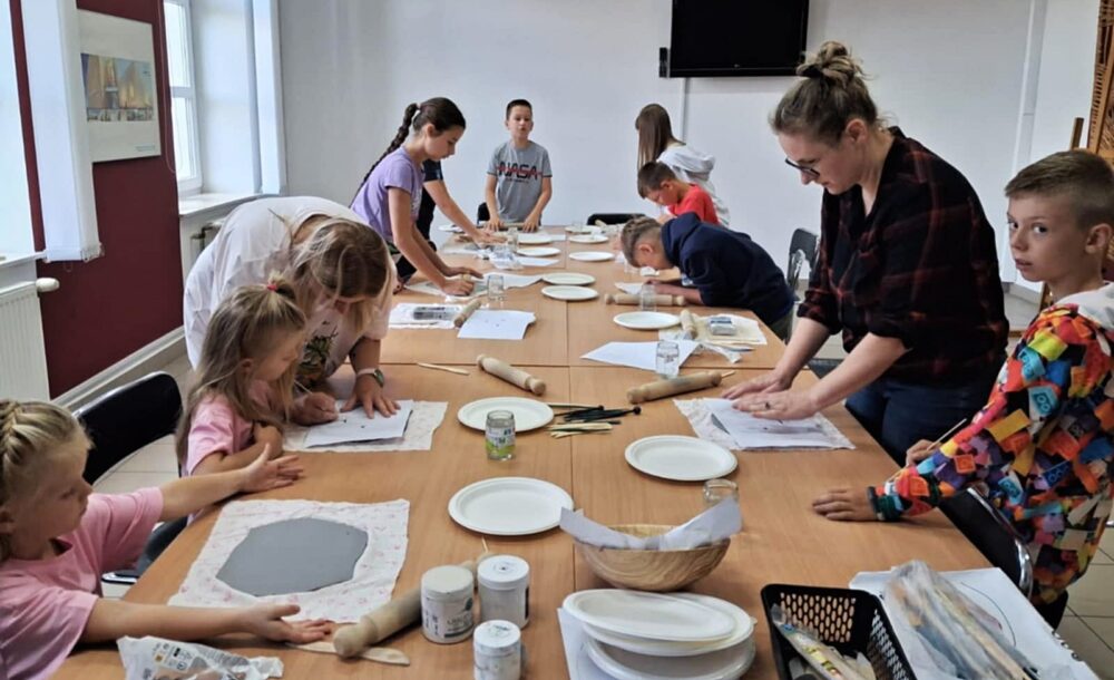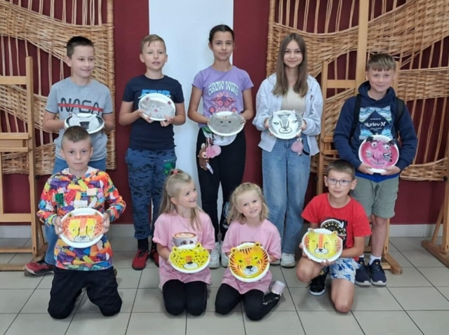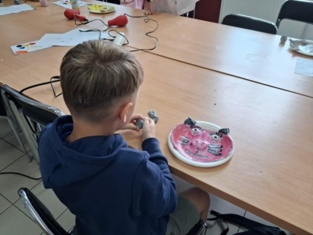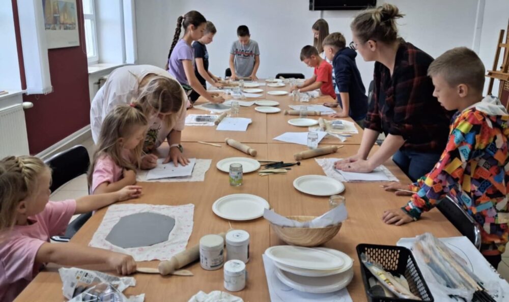 26.08.2025r. w ramach wakacji z Miejskim Ośrodkiem Kultury w Centrum Wikliniarstwa odbyły się zajęcia plastyczne „Kocie cętki”. Pod czujnym okiem prowadzącej dzieci rozwijały swoją kreatywność, wykonując talerzyki z masy samoutwardzalnej. Mali artyści z ogromnym zaangażowaniem nadawali swoim pracom niepowtarzalne kształty i wzory, a każdy talerzyk stał się małym dziełem sztuki. Była to doskonała okazja do wspólnej zabawy, rozwijania zdolności manualnych oraz odkrywania radości tworzenia.