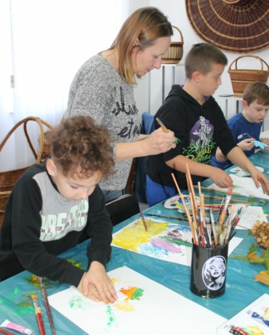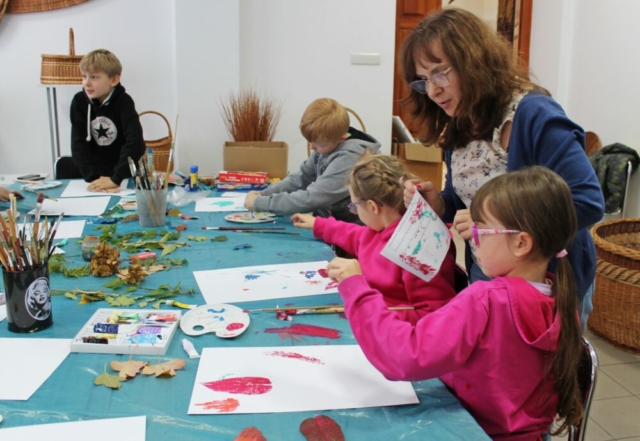 W tym tygodniu uczestnicy warsztatów arteterapii, organizowanych w ramach projektu „Bliżej siebie – przełamujemy bariery. Edycja II”, tworzyli barwne, jesienne prace, wykorzystując technikę frotażu. Malowali obrazy na płótnie według własnych pomysłów, używając farb akrylowych. Wykonali również dekoracyjne dynie, wykorzystując kolorowe materiały i naturalne wypełnienia. W twórczym procesie wspierali ich plastycy oraz oligofrenopedagodzy prowadzący zajęcia.
