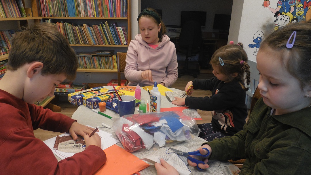 21.02.2022r. w Fili bibliotecznej w Kopkach odbyły się warsztaty literacko – plastyczne, podczas których dzieci czytały fragmenty książki o przygodach niezwykłego weterynarza Doktora Dolittle oraz stworzyły gazetowe portrety jego gromadki zwierząt.