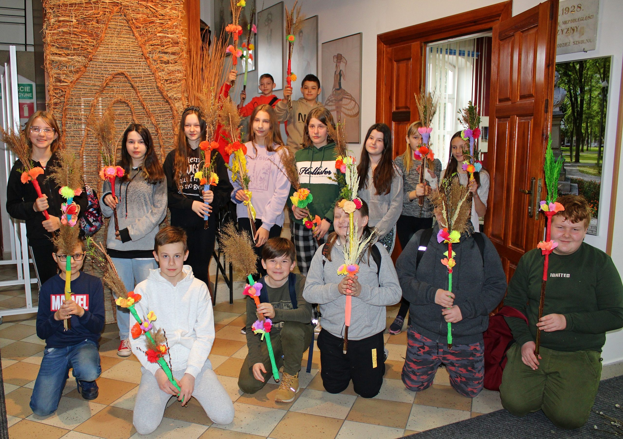 W okresie przed Niedzielą Palmową w trosce o zachowanie i pielęgnowanie tradycji ludowej w Centrum Wikliniarstwa 31.03.2022r. odbyły się warsztaty robienia palm wielkanocnych. Zajęcia prowadziła instruktor plastyk, która przekazała tajniki wykonywania tych palm i pokazała w jaki sposób można je samodzielnie wykonać. Uczniowie klasy V PSP nr 2 wraz z opiekunem p. Waldemarem Skibą wykonywali palmy tradycyjną metodą z naturalnych składników: wierzby, bazi, bukszpanu, traw oraz kolorowych kwiatów z bibuły i krepiny. Pięknie zrobione palmy zwiastujące zbliżające się Święta uczestnicy zabrali ze sobą do domu.